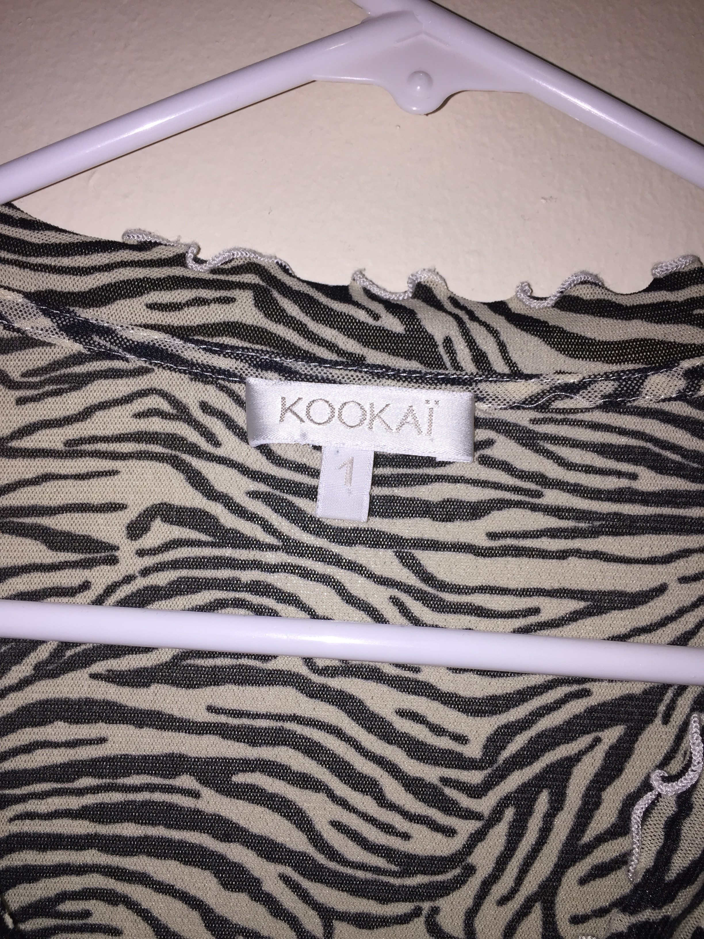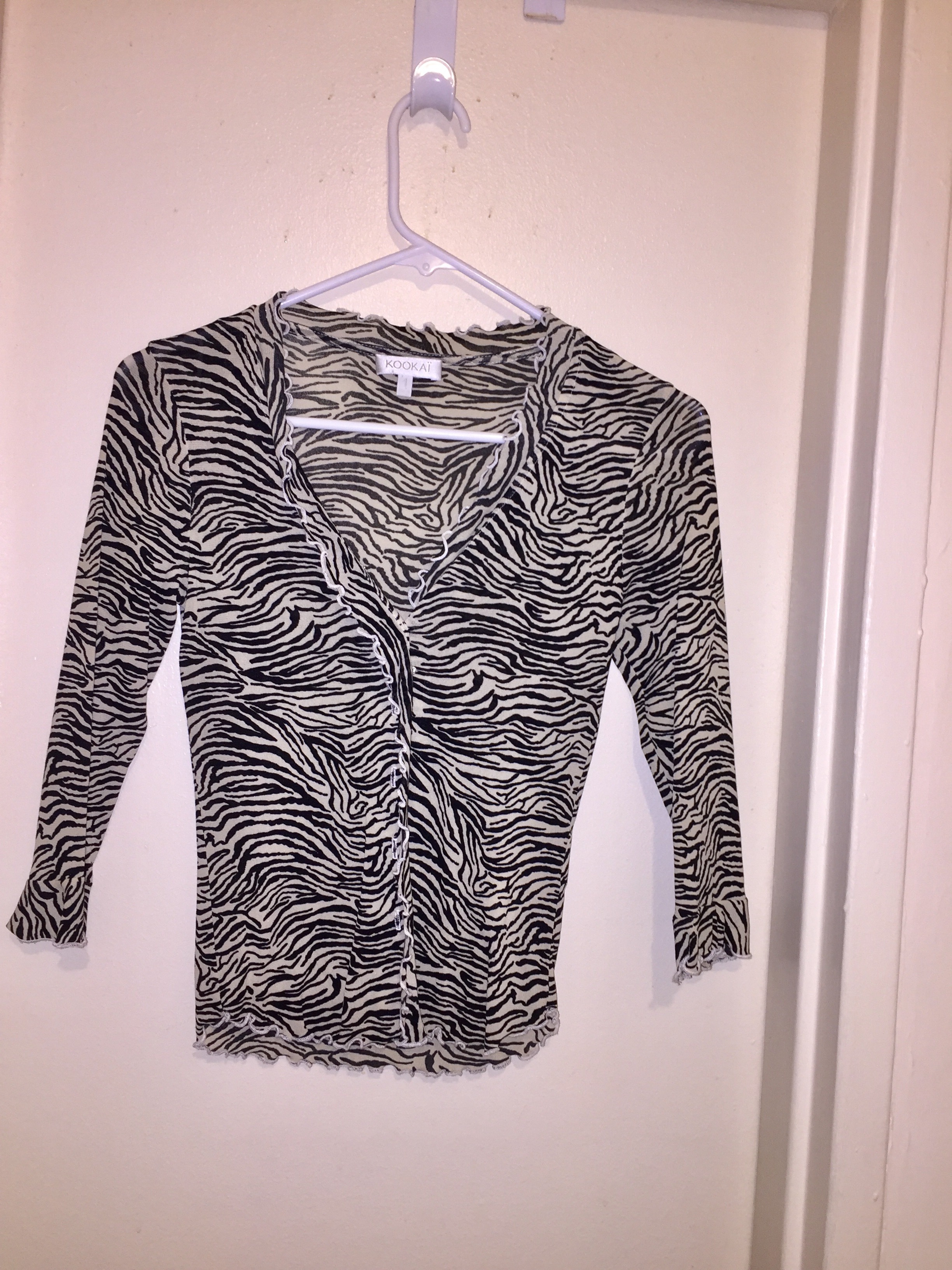 Like new condition. Cute zebra print cardigan. There's a ruffle that goes along the buttons. 3/4 sleeves. Says size 1 on the tag, fits like an extra small. (I forgot to button it for the photo, it looks even better when it's buttoned all the way because you can see the ruffle better!)