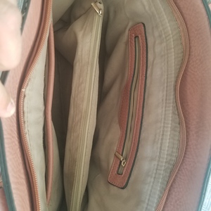 Beautiful blush pink color. Comes with a.long strap. Has a zipper compartment in the middle .
