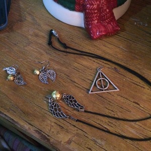 I love HArry Potter but never wear this jewlery. I bought it at a craft sale. It's still like new, really cute golden snitches andd deathly hallows symbol.