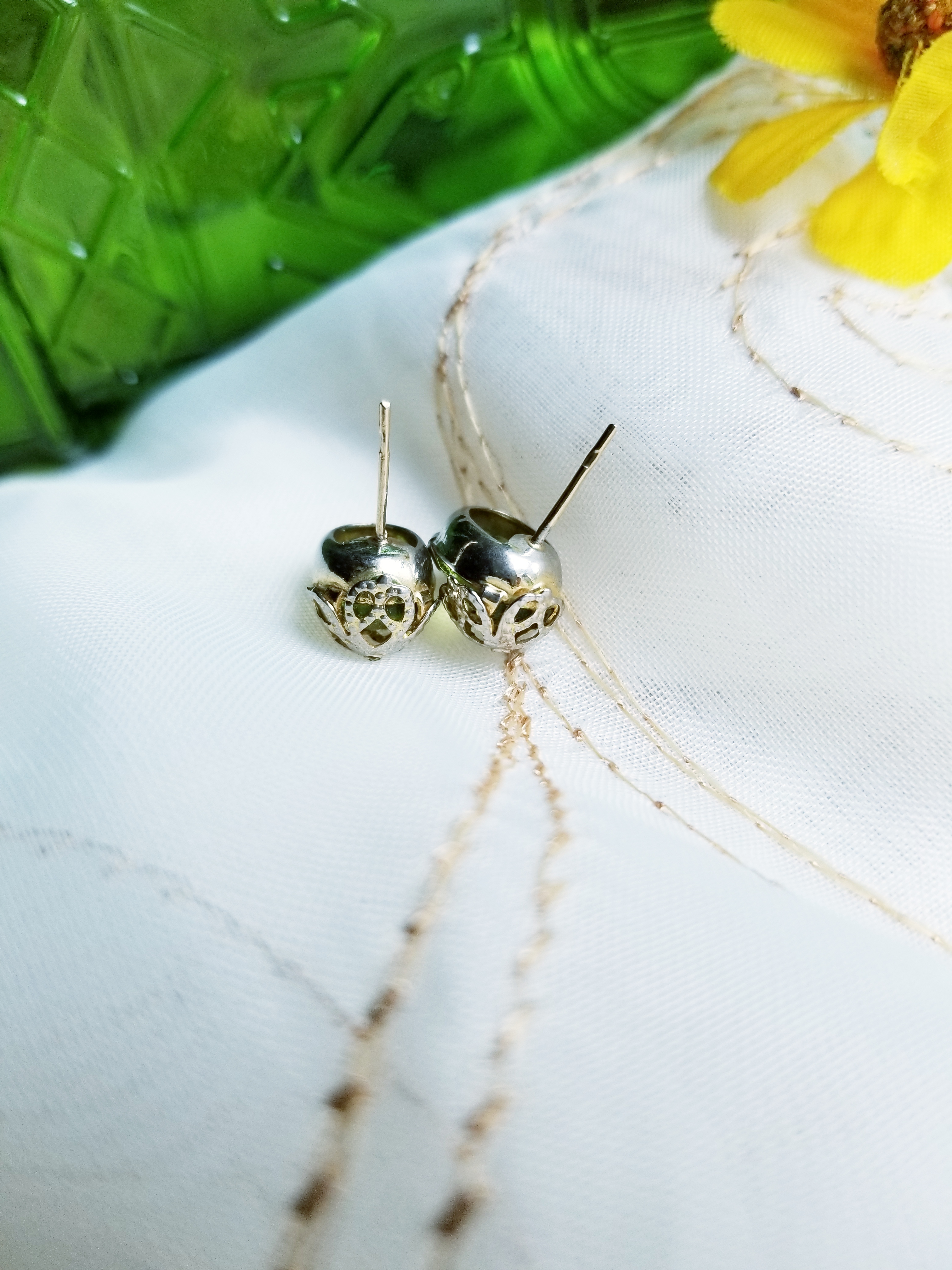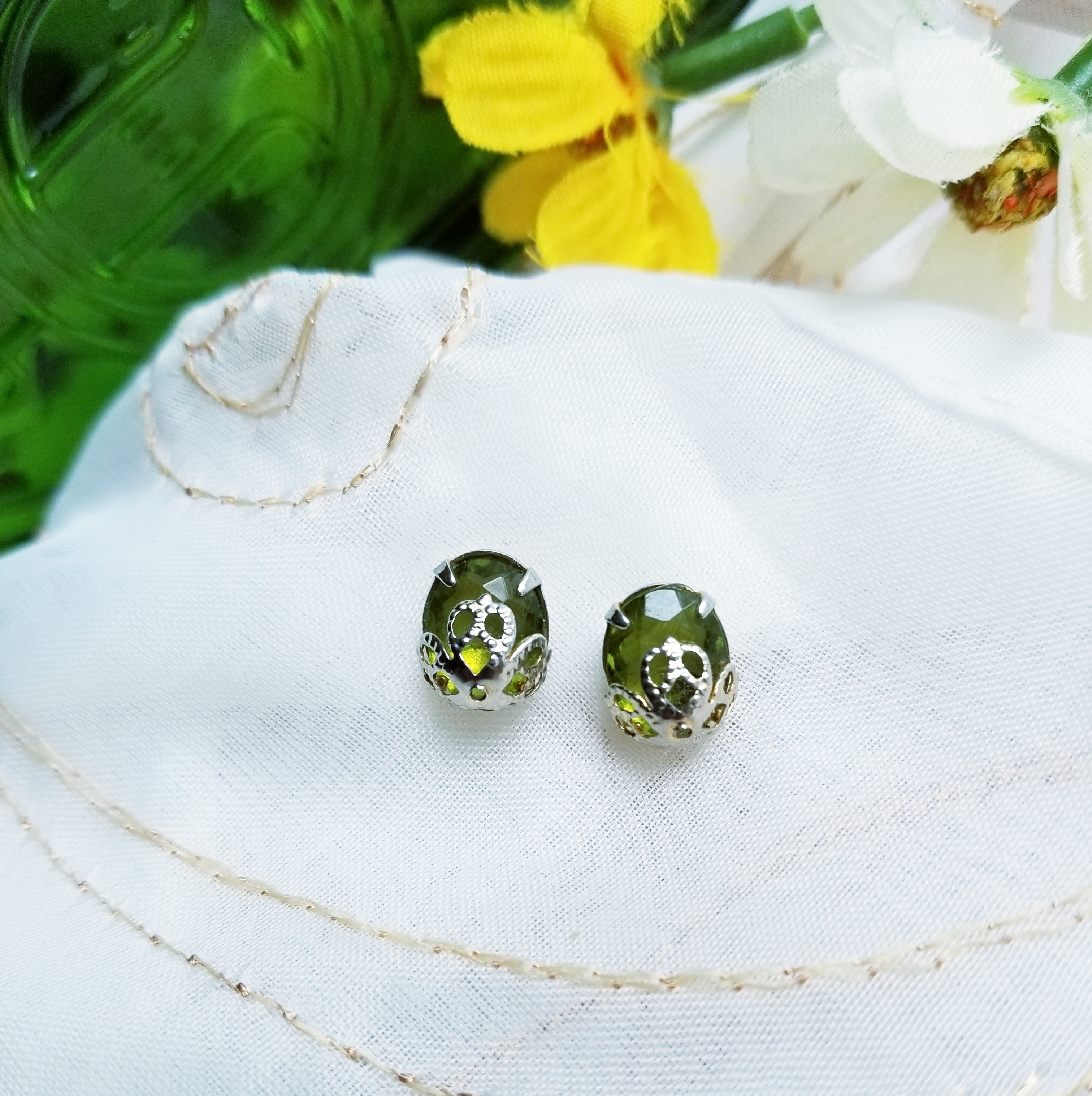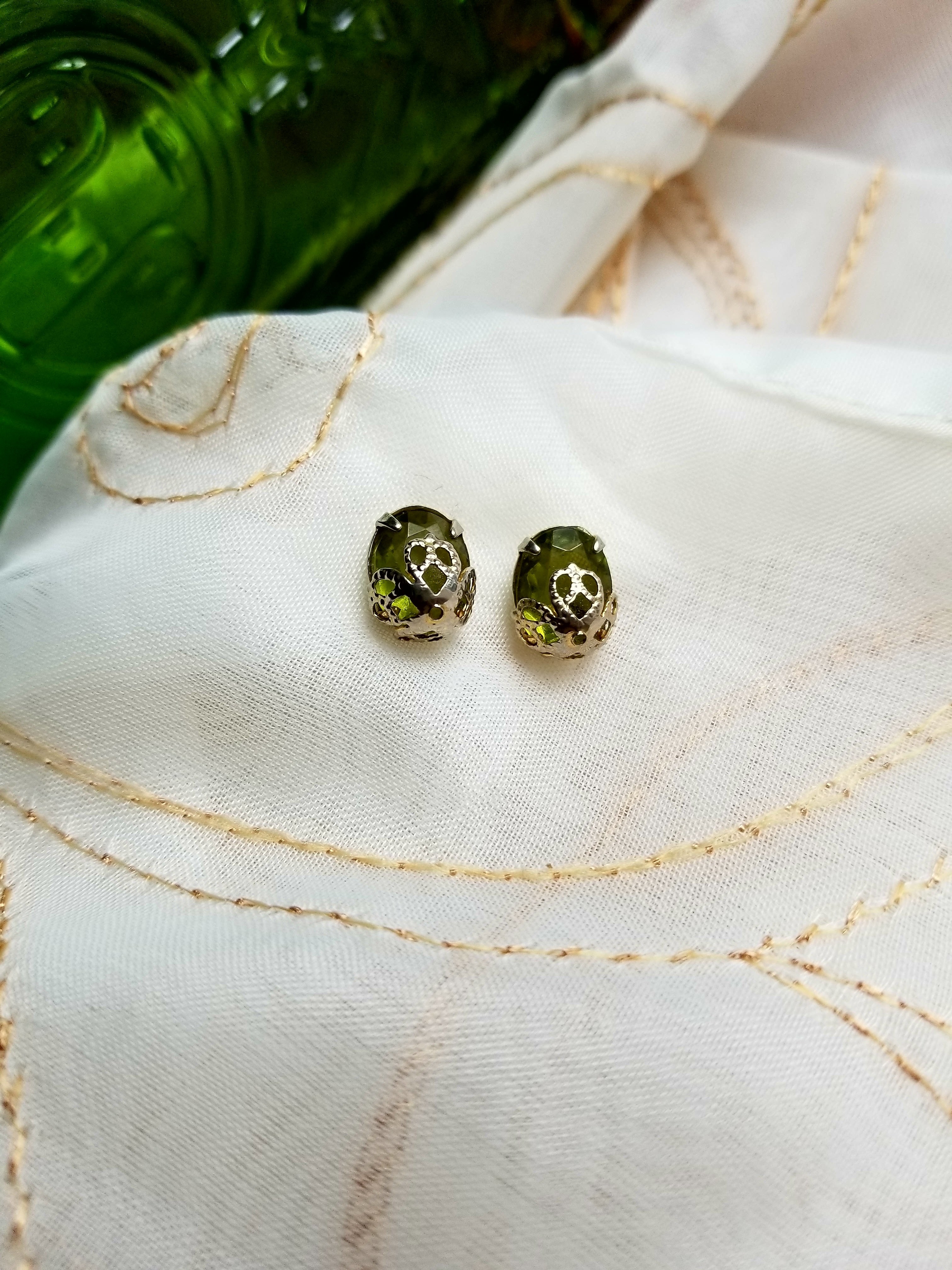 Beautiful antique earrings passed down to me from my great grandmother. Stunning emerald colored stone in a silver toned setting. Truly unique and waiting to make a statement!