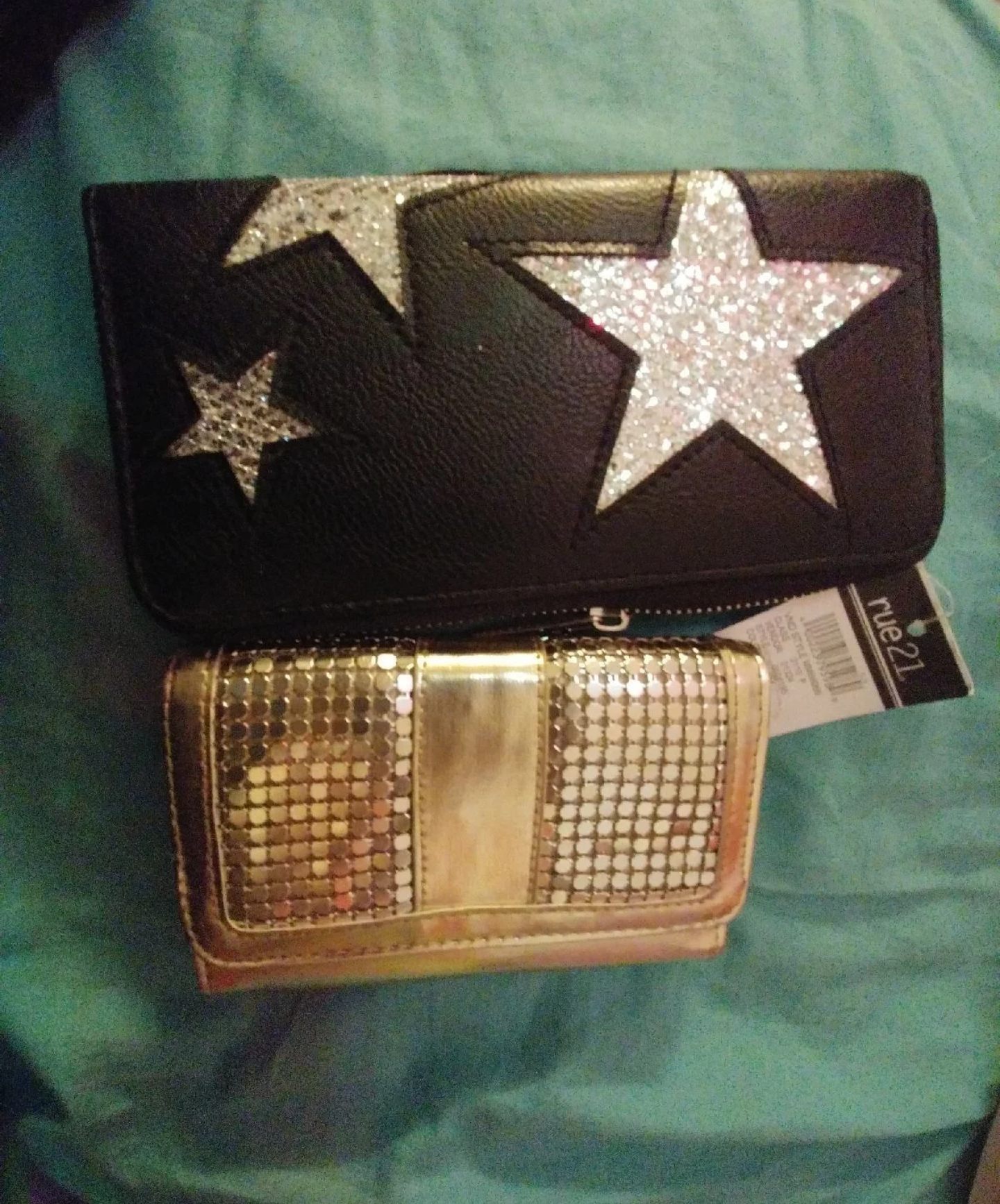 The star wallet is brand new with the tags and the gold wallet has been used very little.