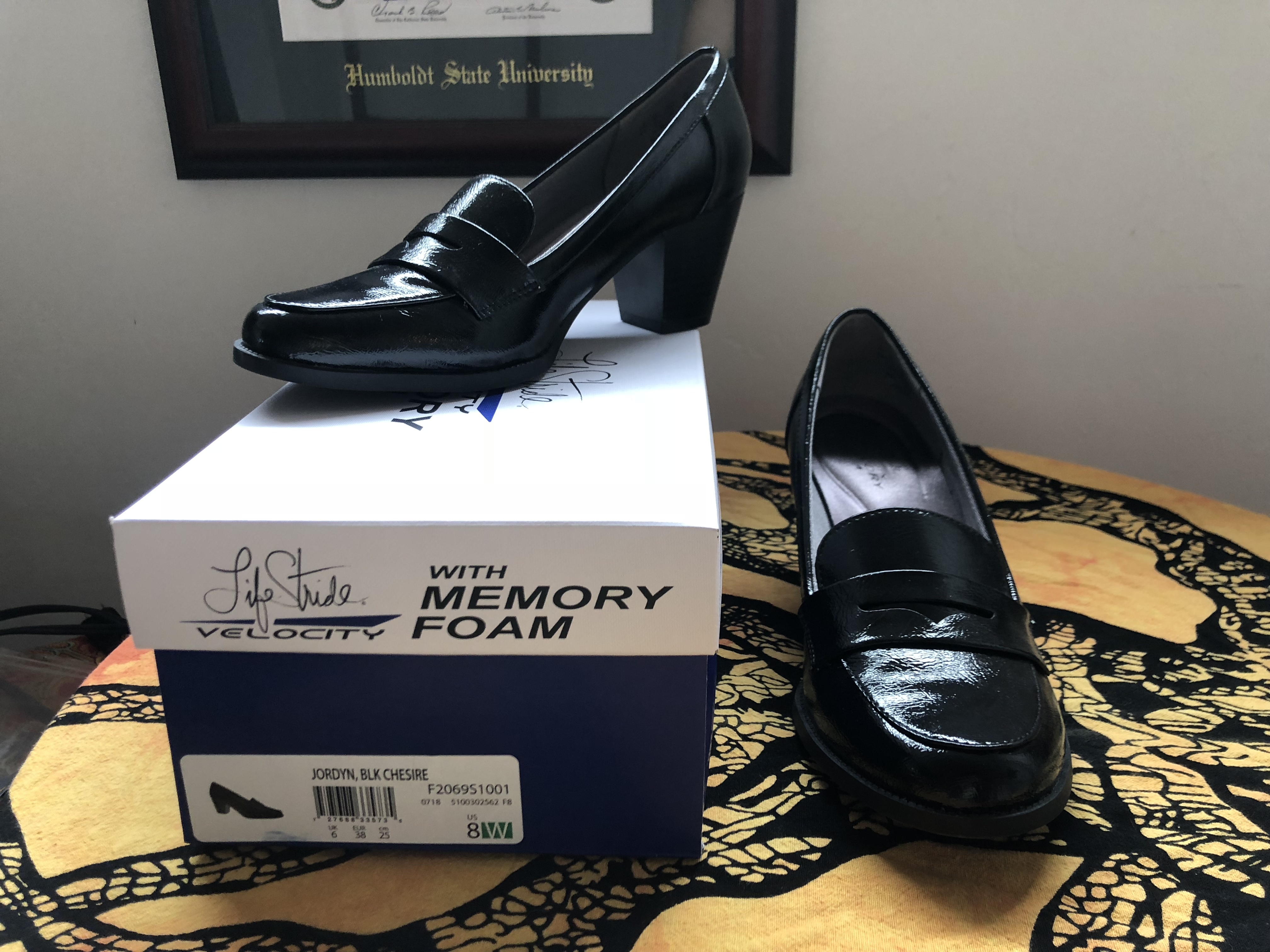 LEFT SHOE IS SIZE 8W RIGHT SHOE IS SIZE 8.5 So I bought these in 8W and my left was tight because I have slightly different sized feet. I liked them so much that I bought them in 8.5 and mismatched them. Now up for trade are a left size 8W and right 8.5 . You can’t notice any difference- they seem to be about the same size width and visually you can’t tell. They don’t show any wear on the soles. Only worn once. Like new with box. Life stride with memory foam! Hope I find my opposite who will enjoy these ;)