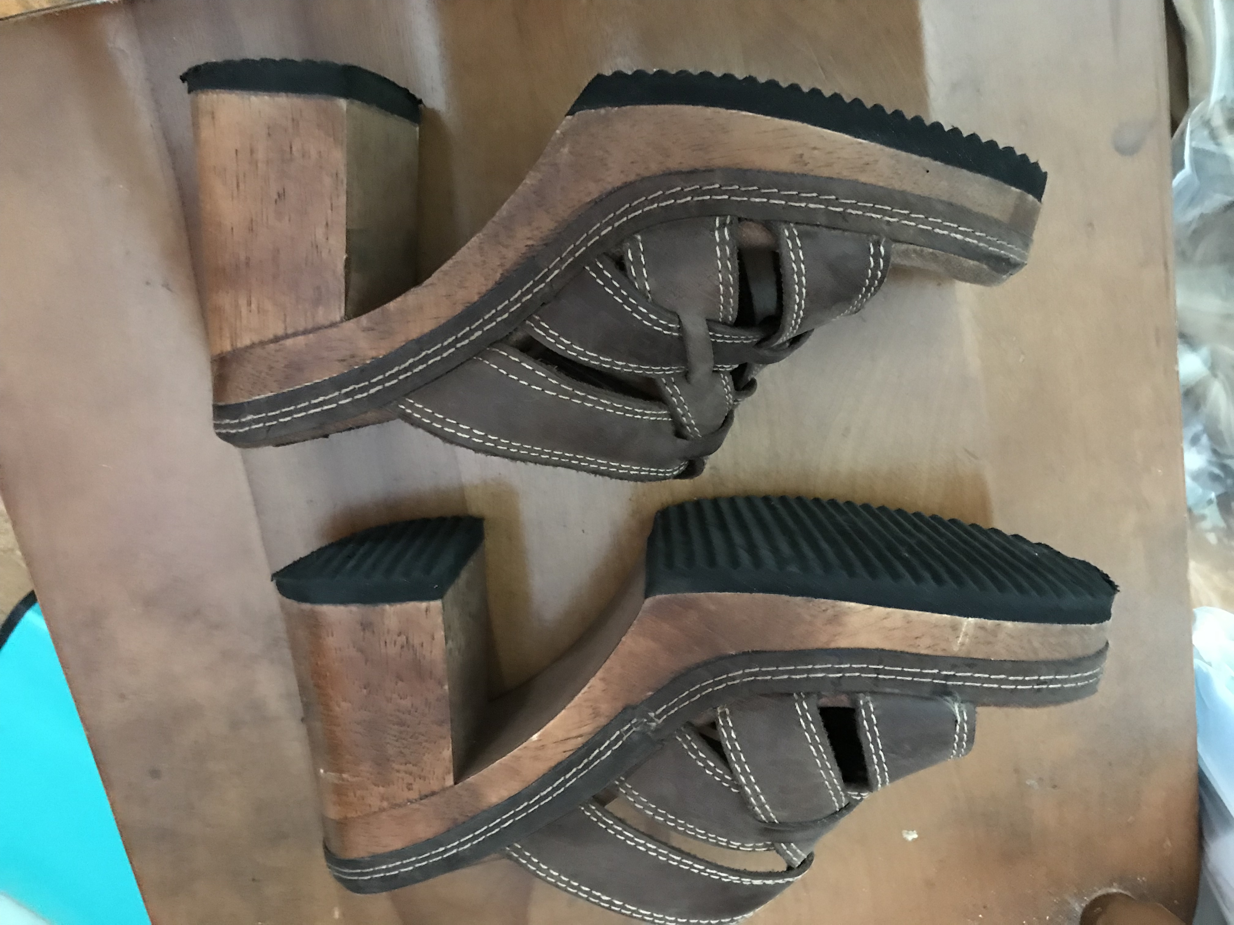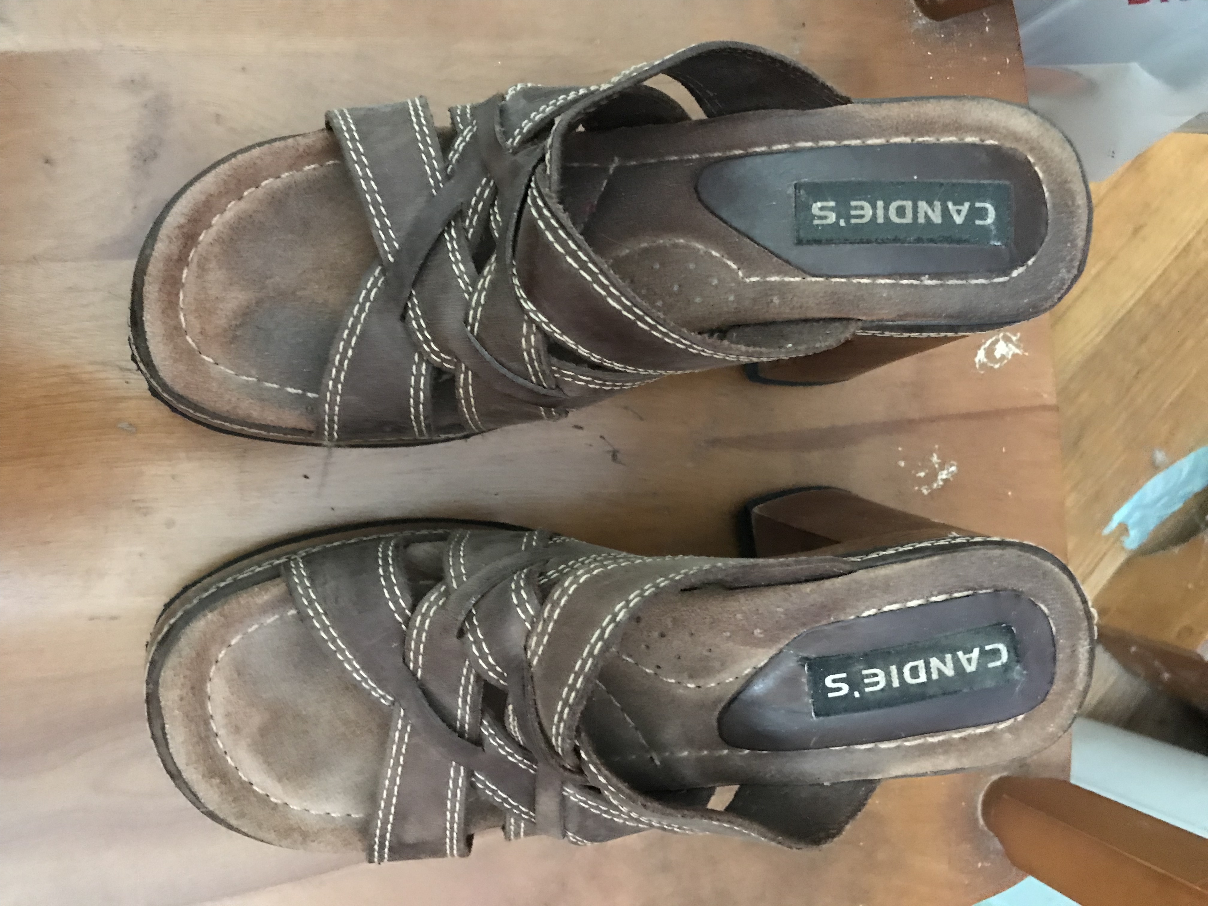 Candie’s open toe shoes, 3 inch chunk heel, leather soles and straps, good condition, rubber bottom for slip resistant, size 7
