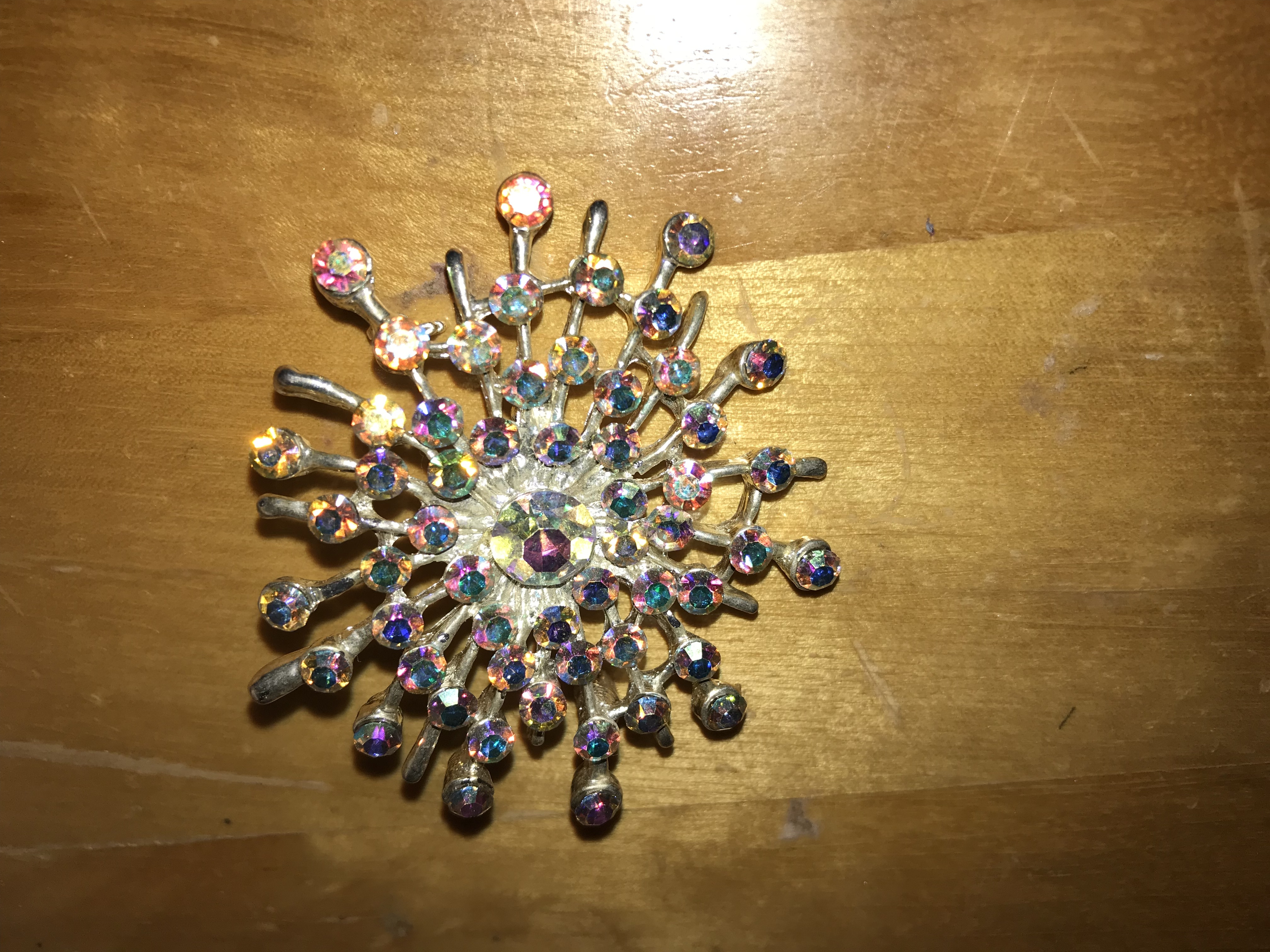 Holographic gemstone brooch, stunning in person, size 3 inches
