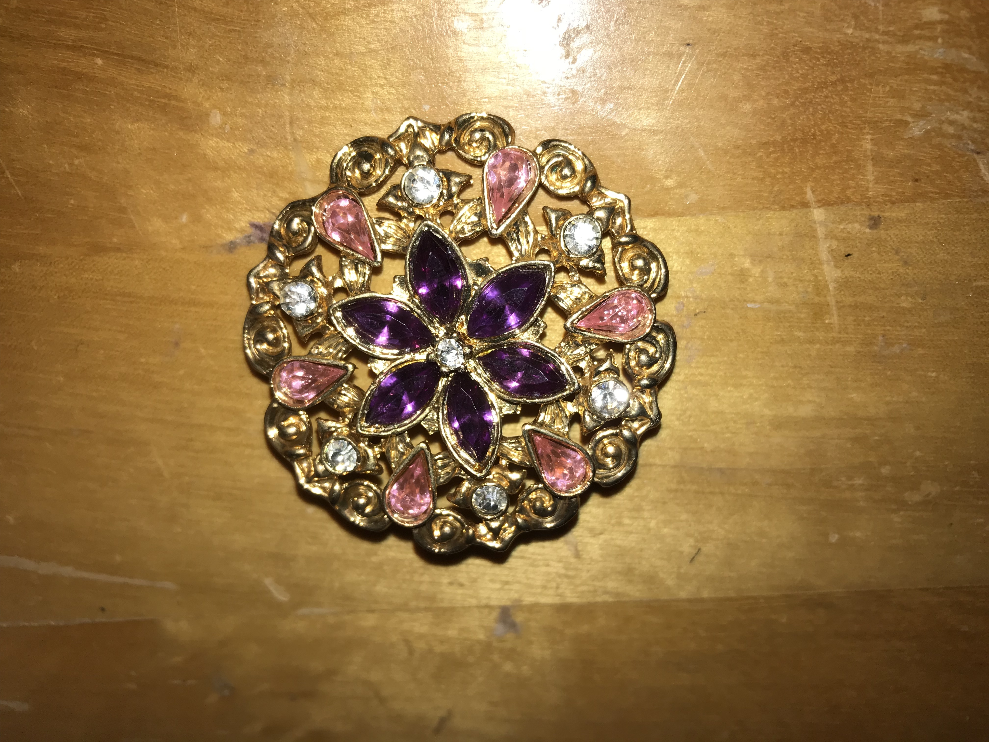 Pink and purple brooch, stunning in person, size 2.5 inches