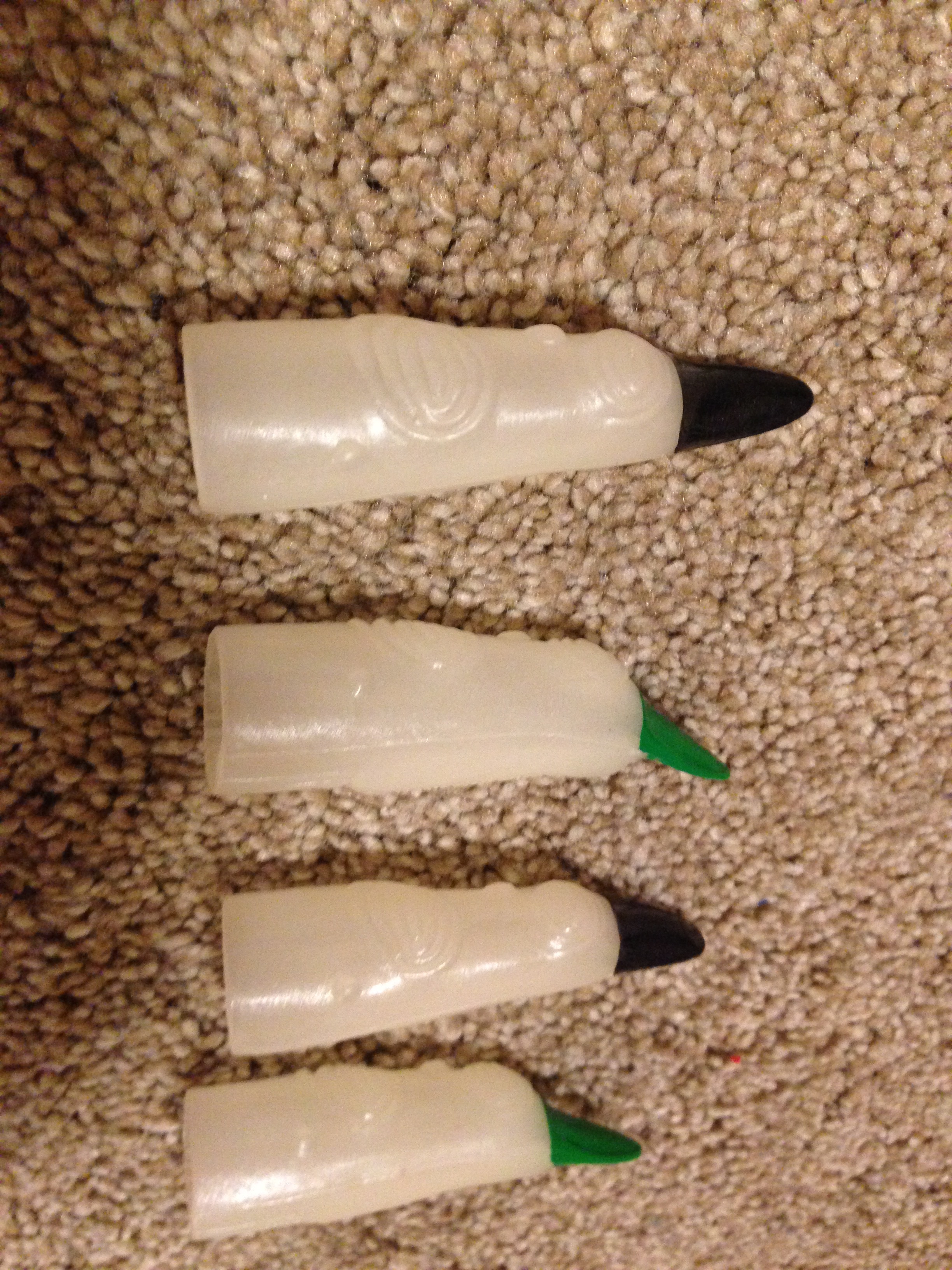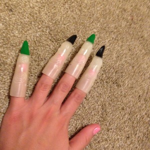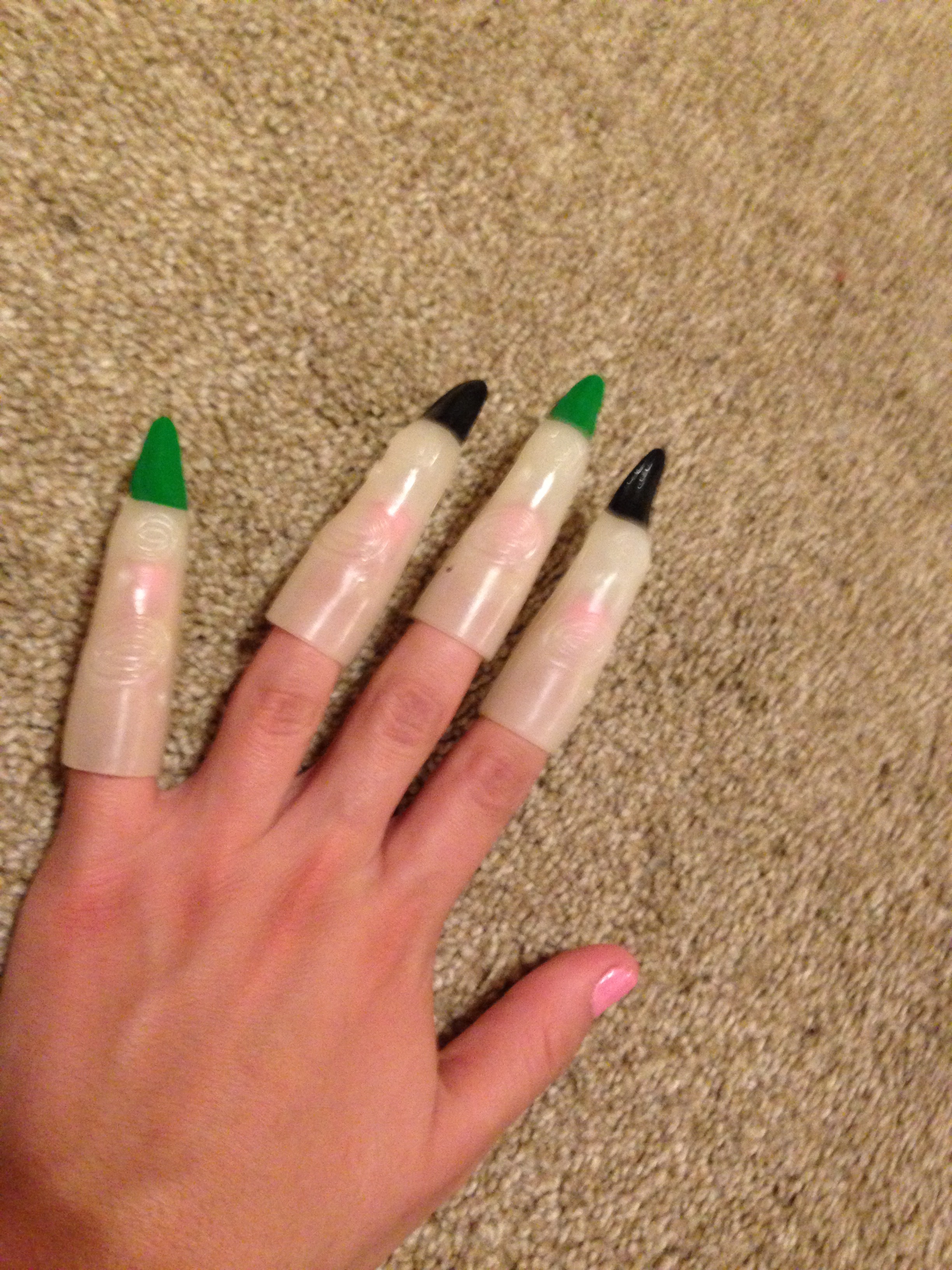 Witch finger 4 count with green and black nails for Halloween or costume party
