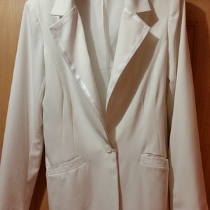 Great for a tall lady. Sleeves nice and long, Wide lapel with white trim on the lapels. Seldom worn. I'm a fair redhead and white was NOT my color. Like new. Metrostyle brand. Lined. Photo doesn't do this one justice.