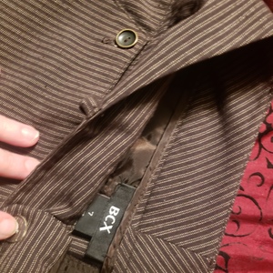 run a bit small...i'm usually a 7, and these are too tight at the waist. I'll provide measurements if needed. Pretty brown/tan pinstripe with metal accent buttons at front pockets!
