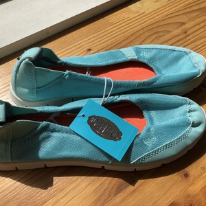 Brand new with tags flats. Mad Love brand (Target) called Lacey in the color Mint. Iris sort of a blue green teal color. Size 8. Too small for me so never worn.