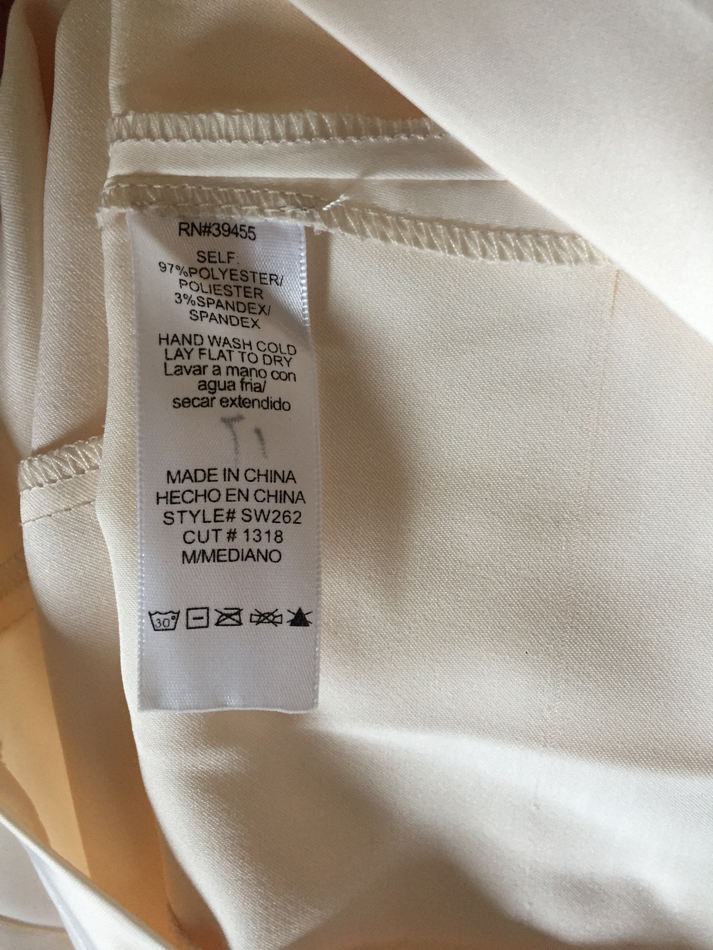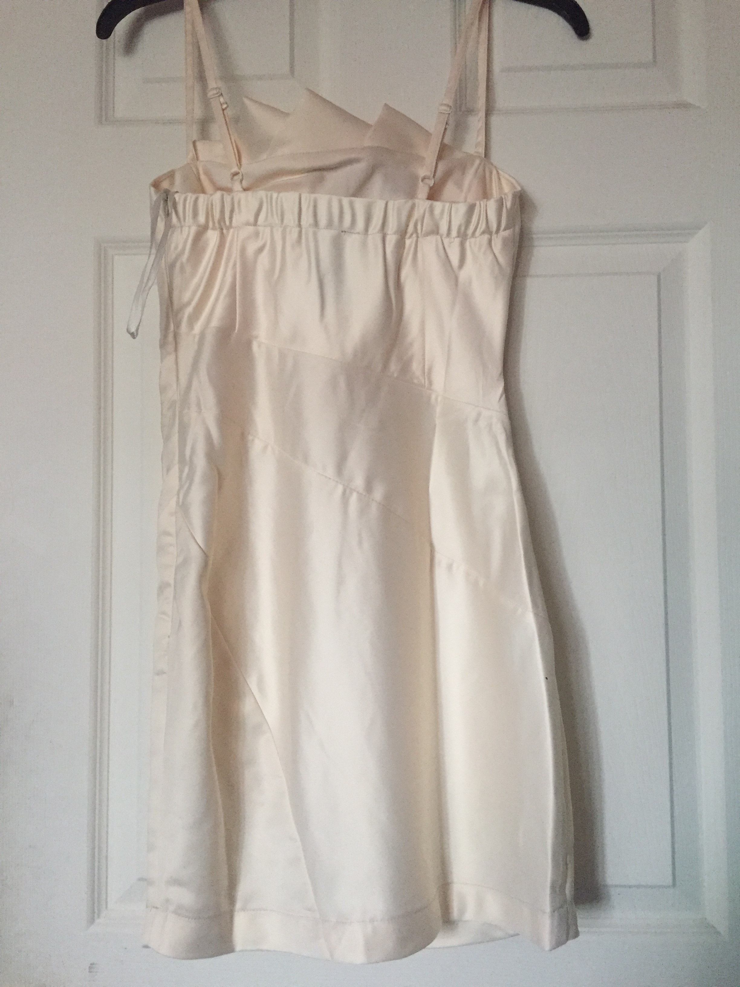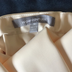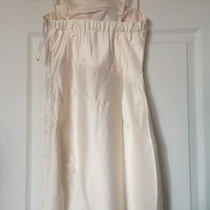 Wow Couture champagne dress says M but its probably an XS. I can take measurements if needed. Top is lined, skirt part is not lined. Brand new without tags. Will need some steaming to smooth out some wrinkles.
