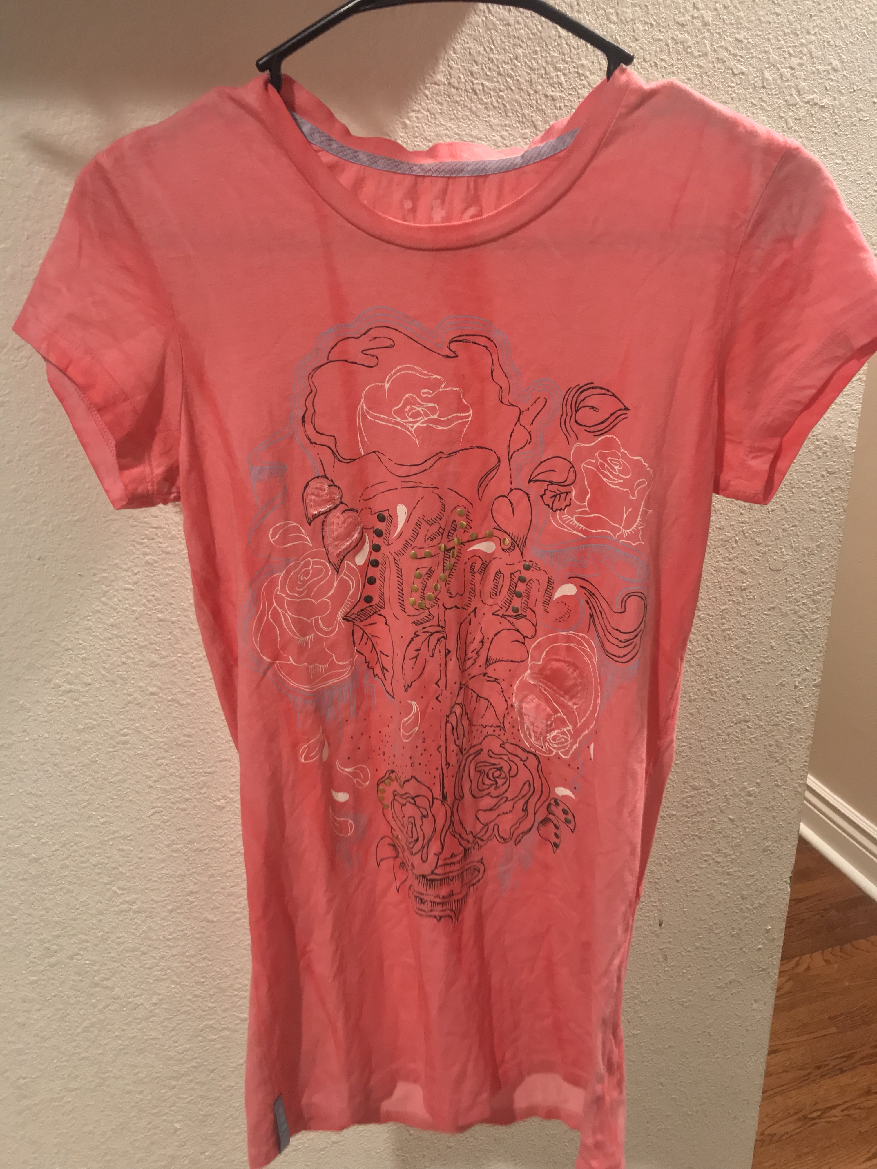 Reddish Pink/Peach Kitson Graphic Tee. Made in USA.