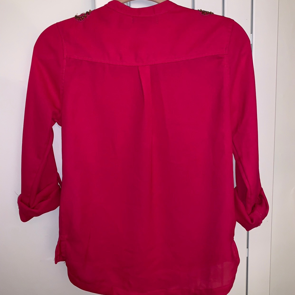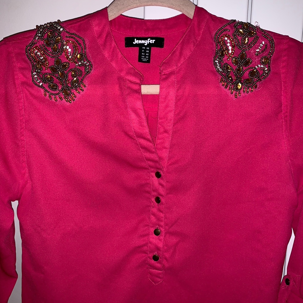 Vintage Jennyfer pink Long sleeve buttoned blouse with vintage shoulder crystal details is being swapped online for free