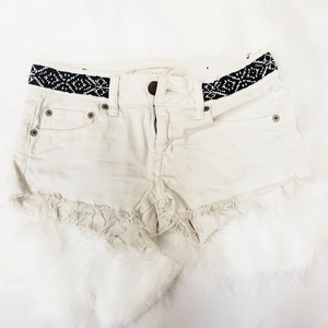 Cute white frayed American eagle jean shorts with beautiful black and white beading on the waist. Size 0