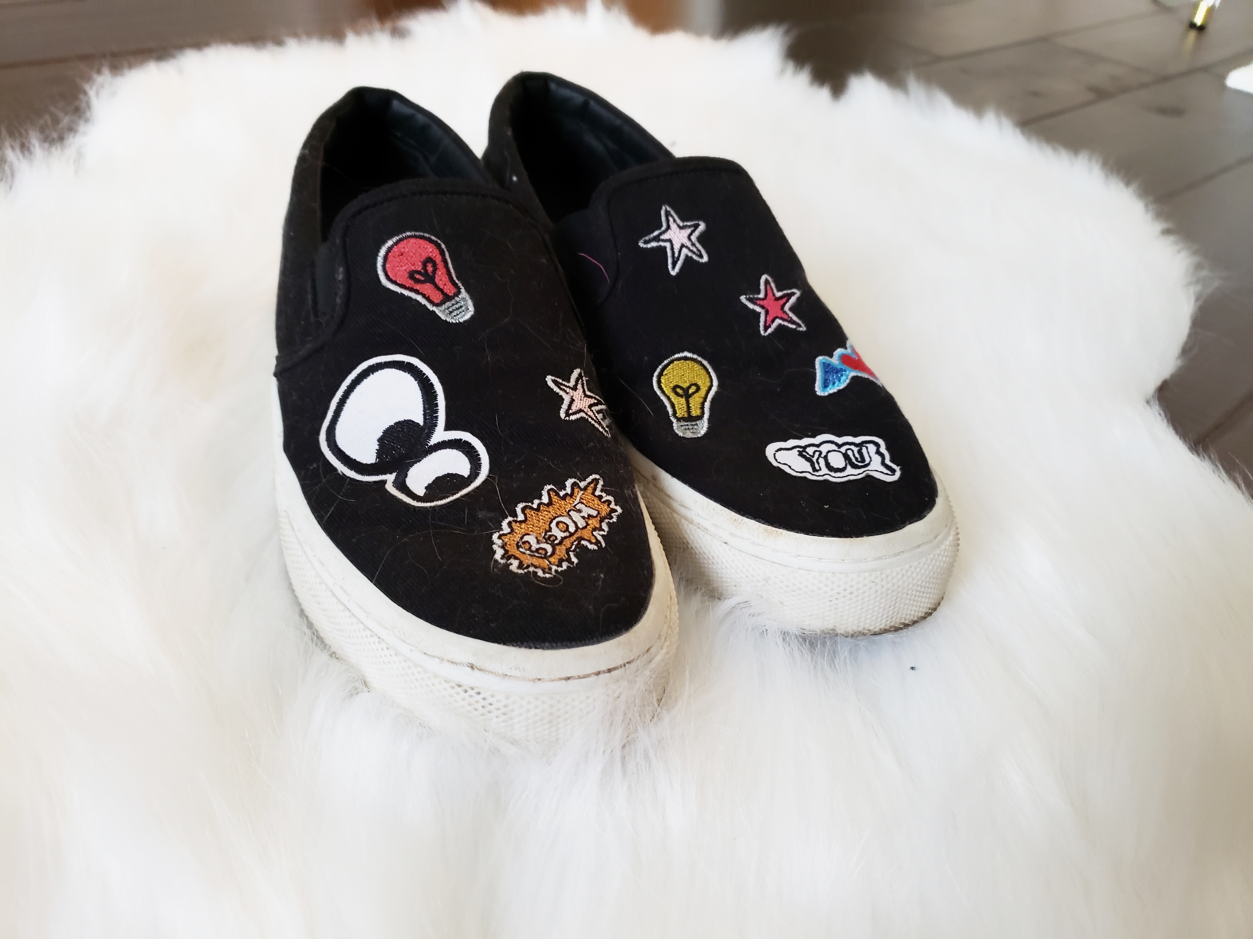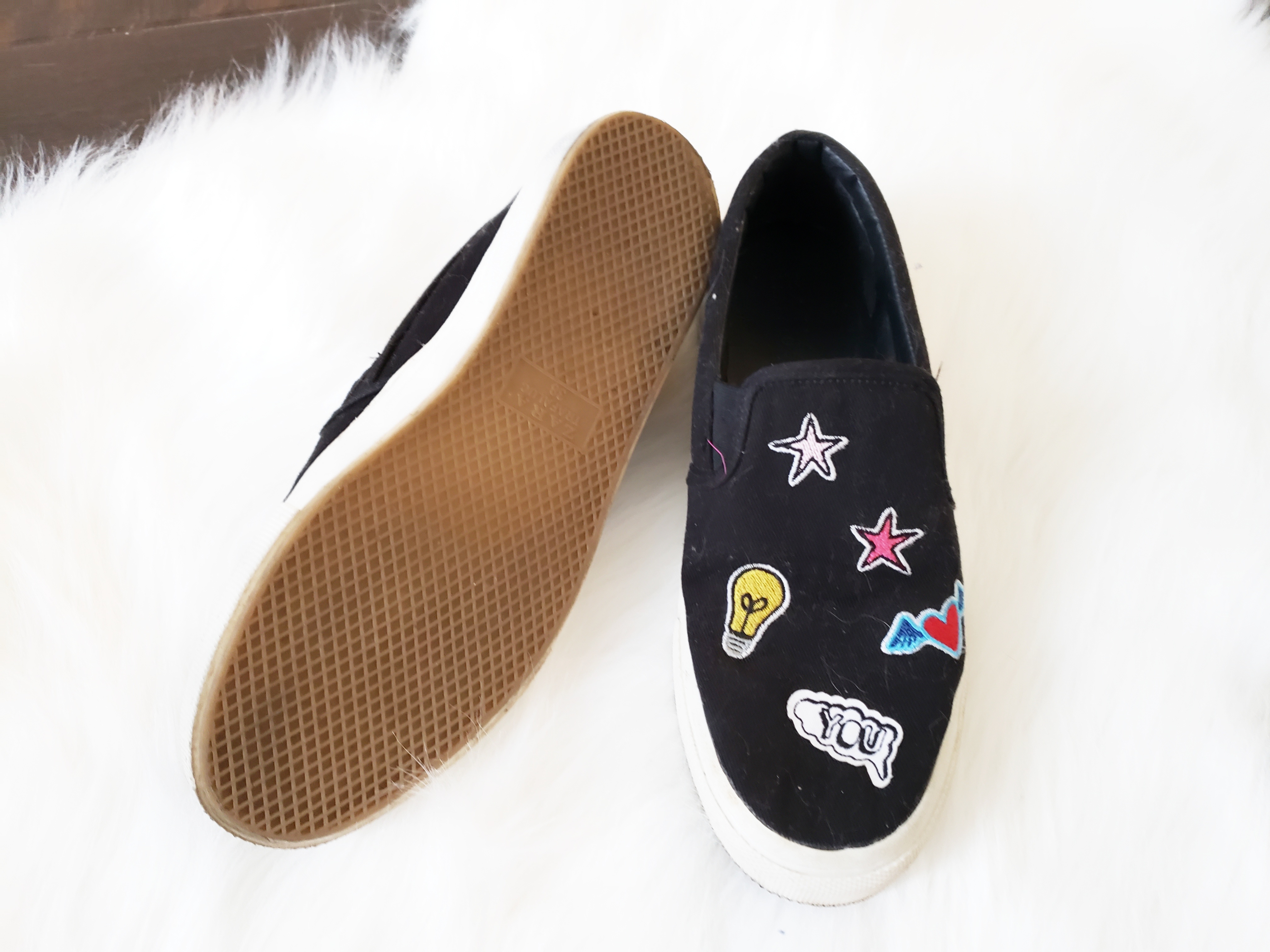 Cute zara black canvas shows with cute patches and detailing. So unique and fun, love these shoes but they are too small for me now.