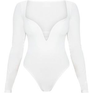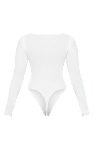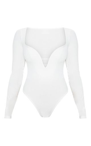 PRETTYLITTLETHING Plunge Neck White Bodysuit