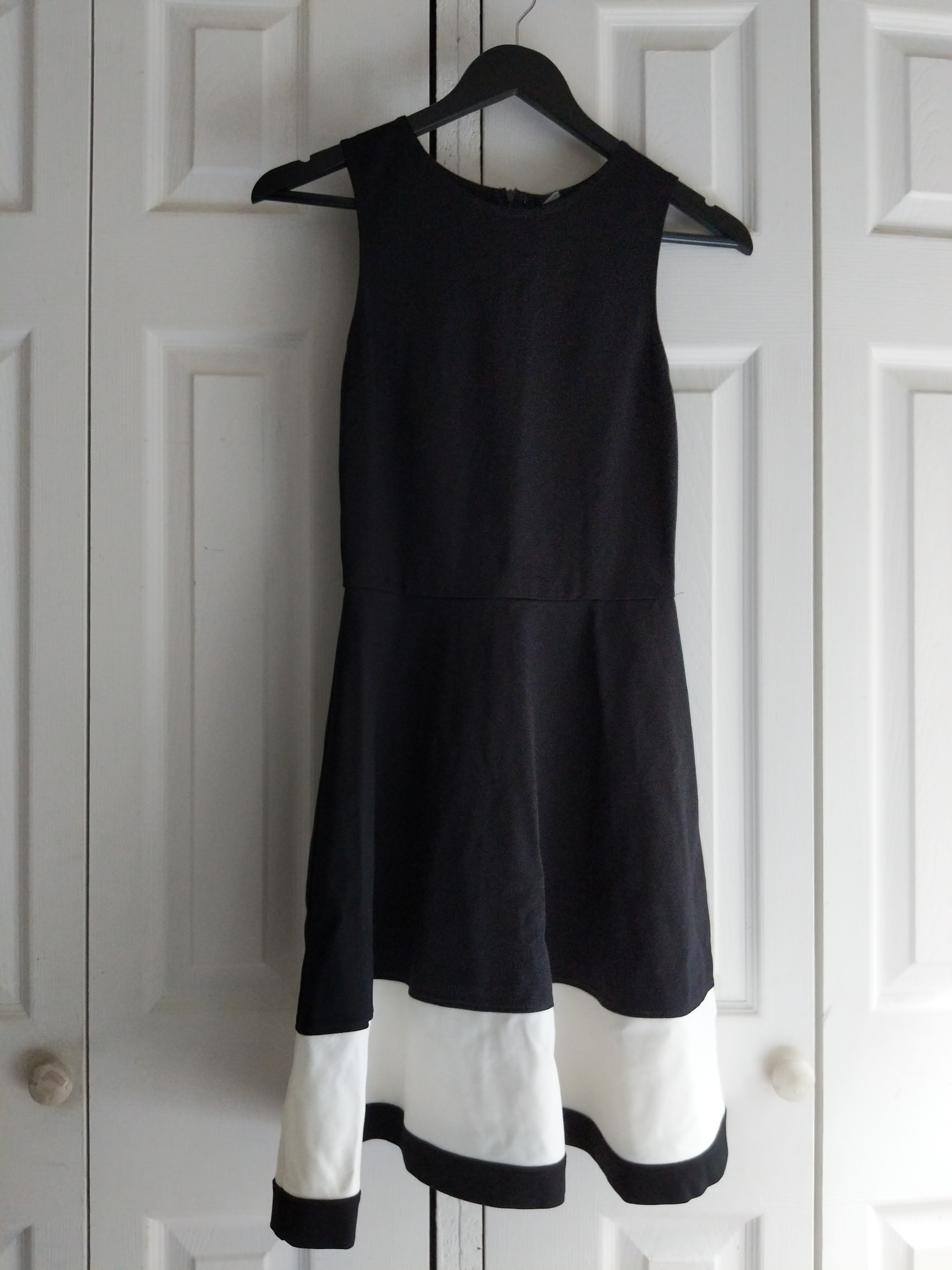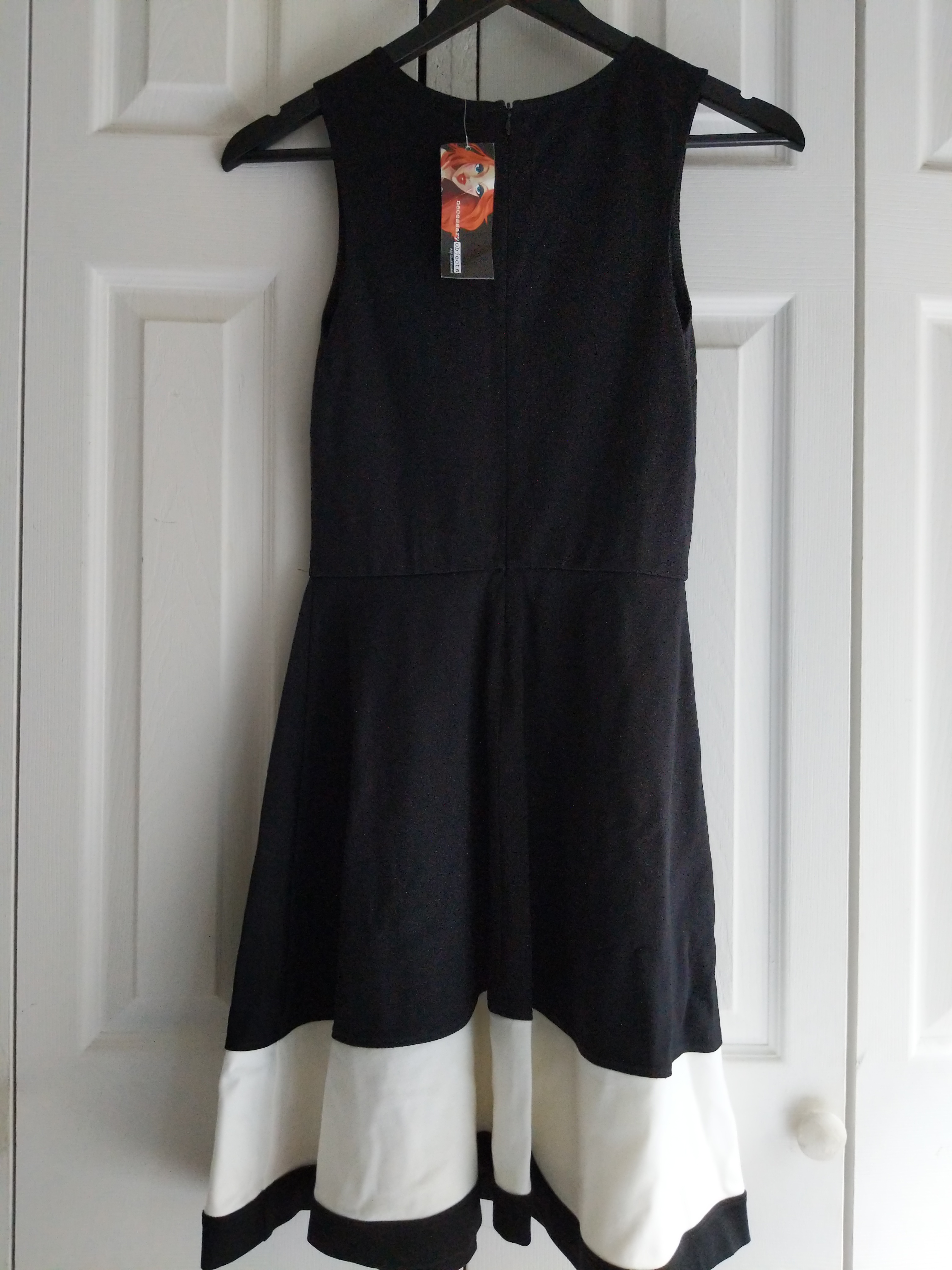 Design Lab Lord and Taylor Black Dress Size S NWT. Condition is New with tags. Black dress with white stripe on bottom. Fit and Flare style