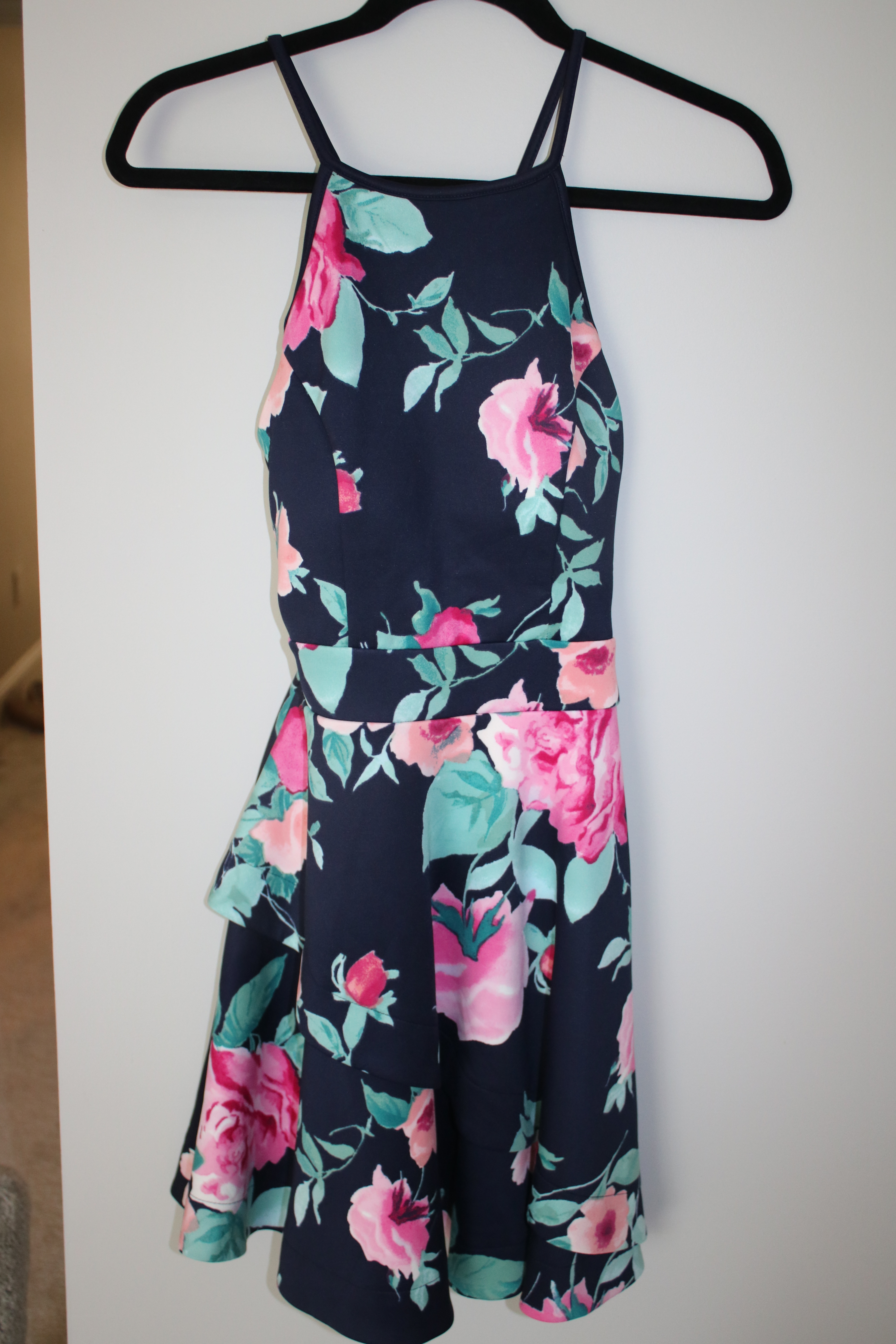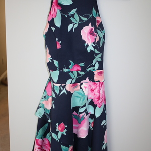 Navy Blue Floral Semi-Formal Dress