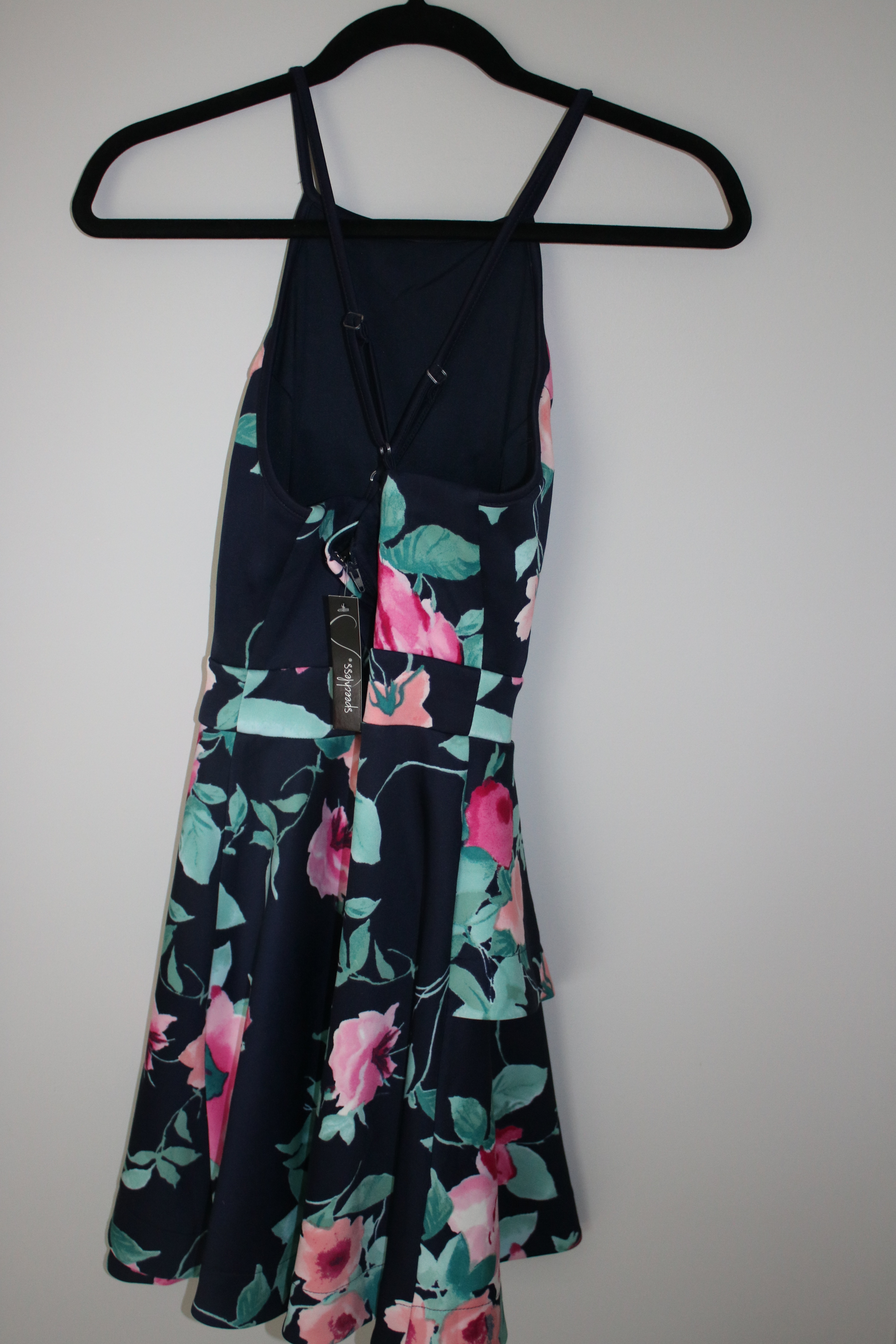 Tag still attached. Cross-backed dress with one ruffle in the front.