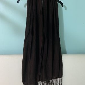 This long brown shawl is thin but can be folded (it’s folded in the picture). The shawl also has tassles on the ends.