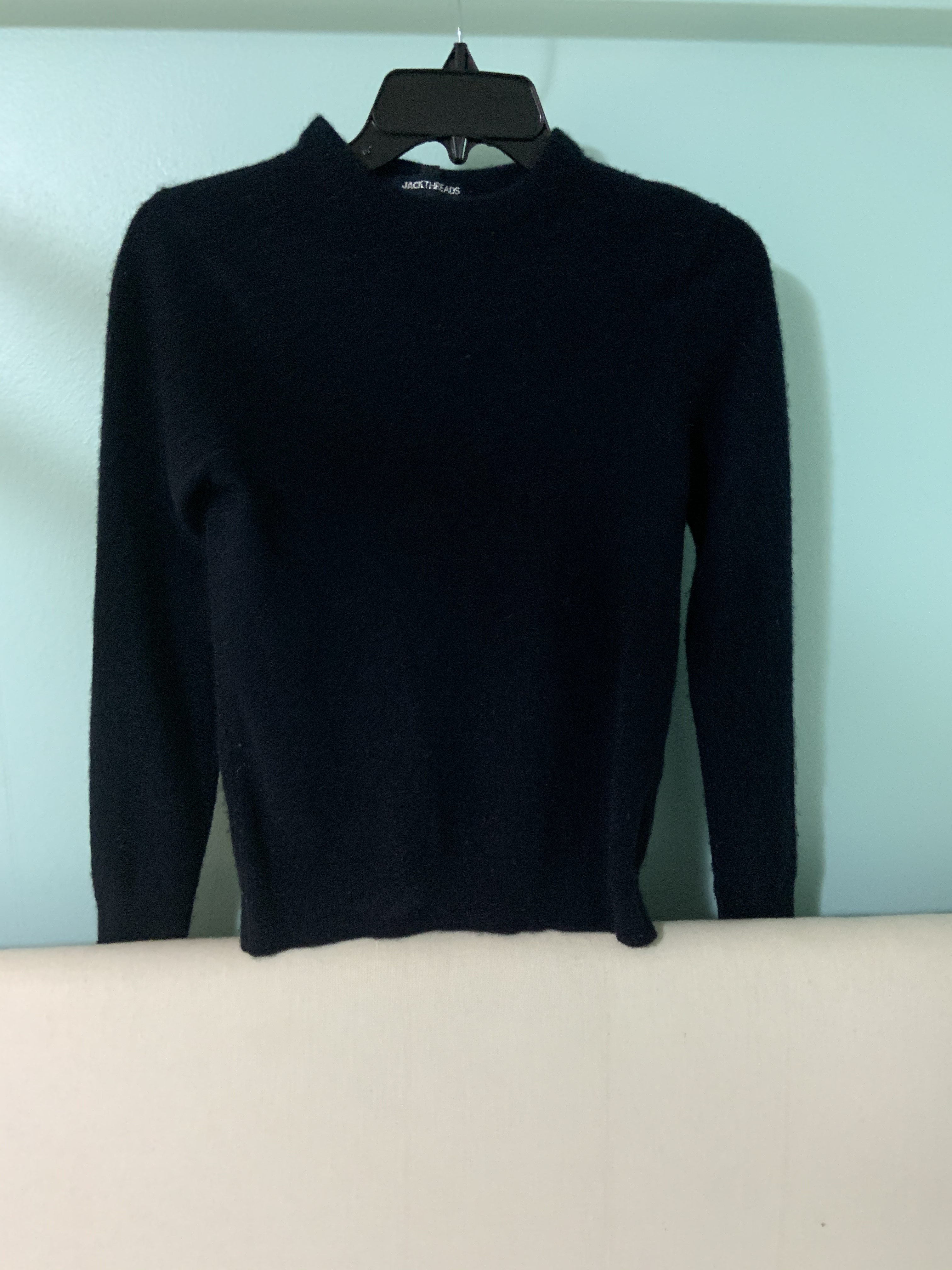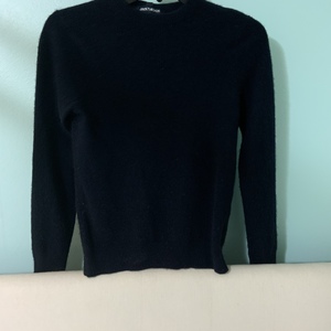 This navy blue, 100% cashmere sweater is great for keeping warm. The hanger makes the sweater appear to have broad shoulders but in reality I'm rehashing it because the shoulders are normal (I have broad shoulders).