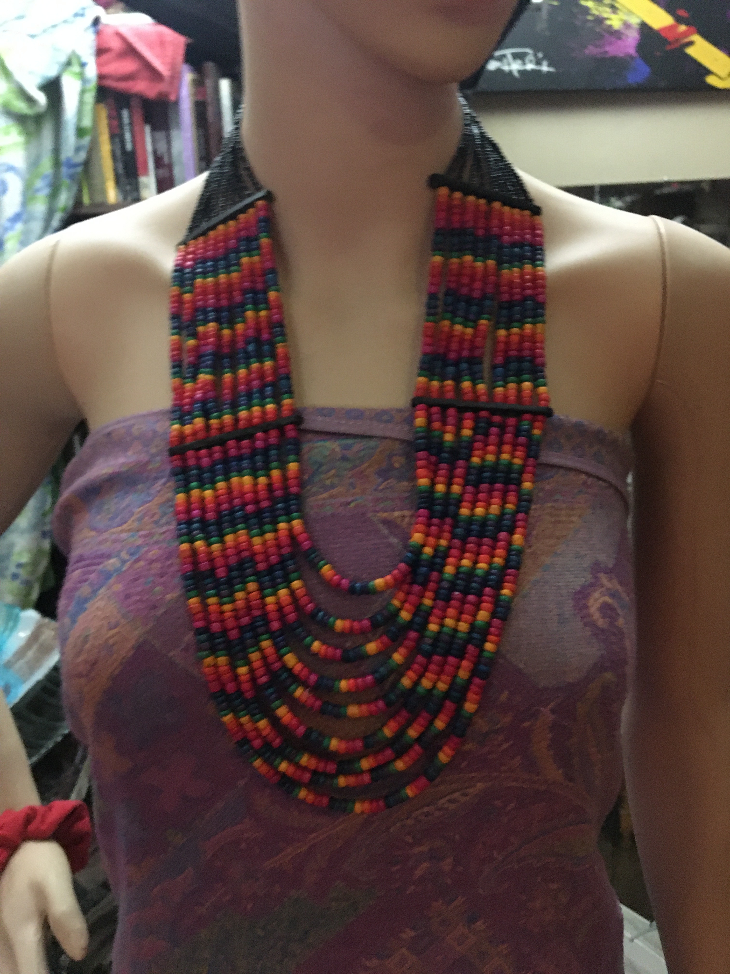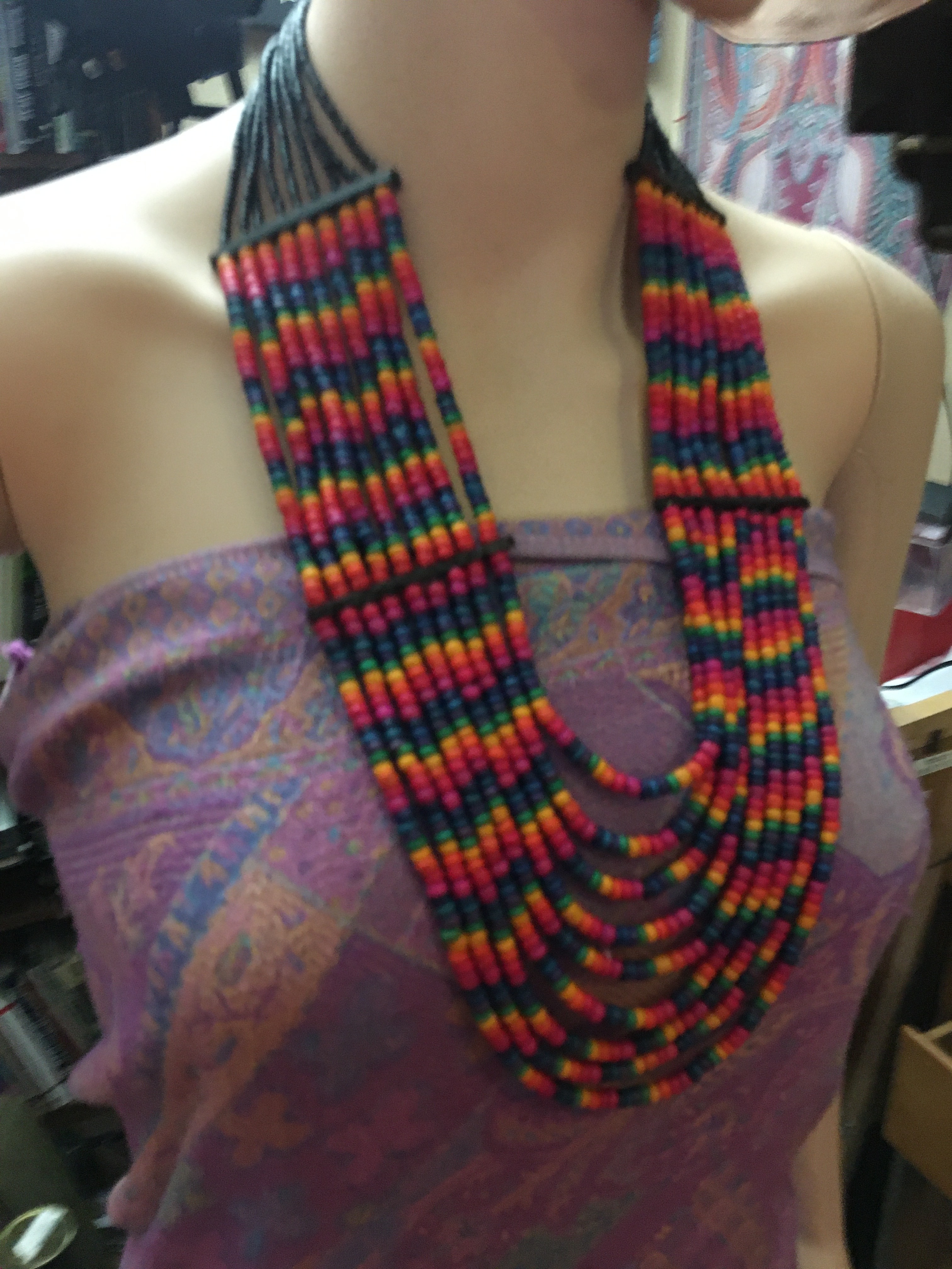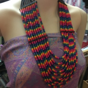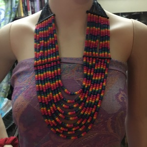 Wood color beads and black glass beads nine strands maybe