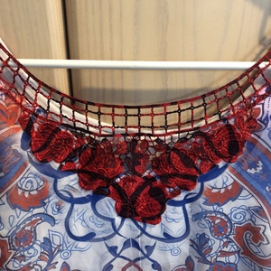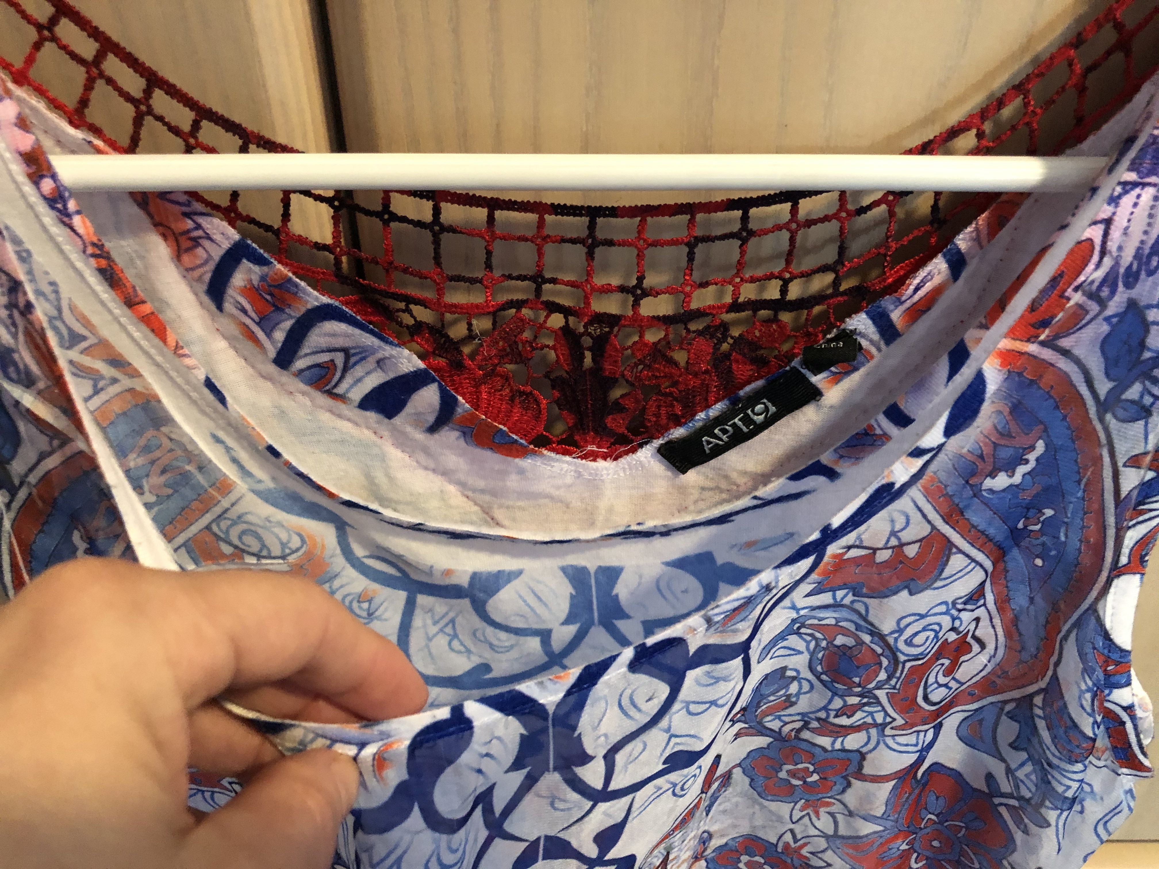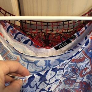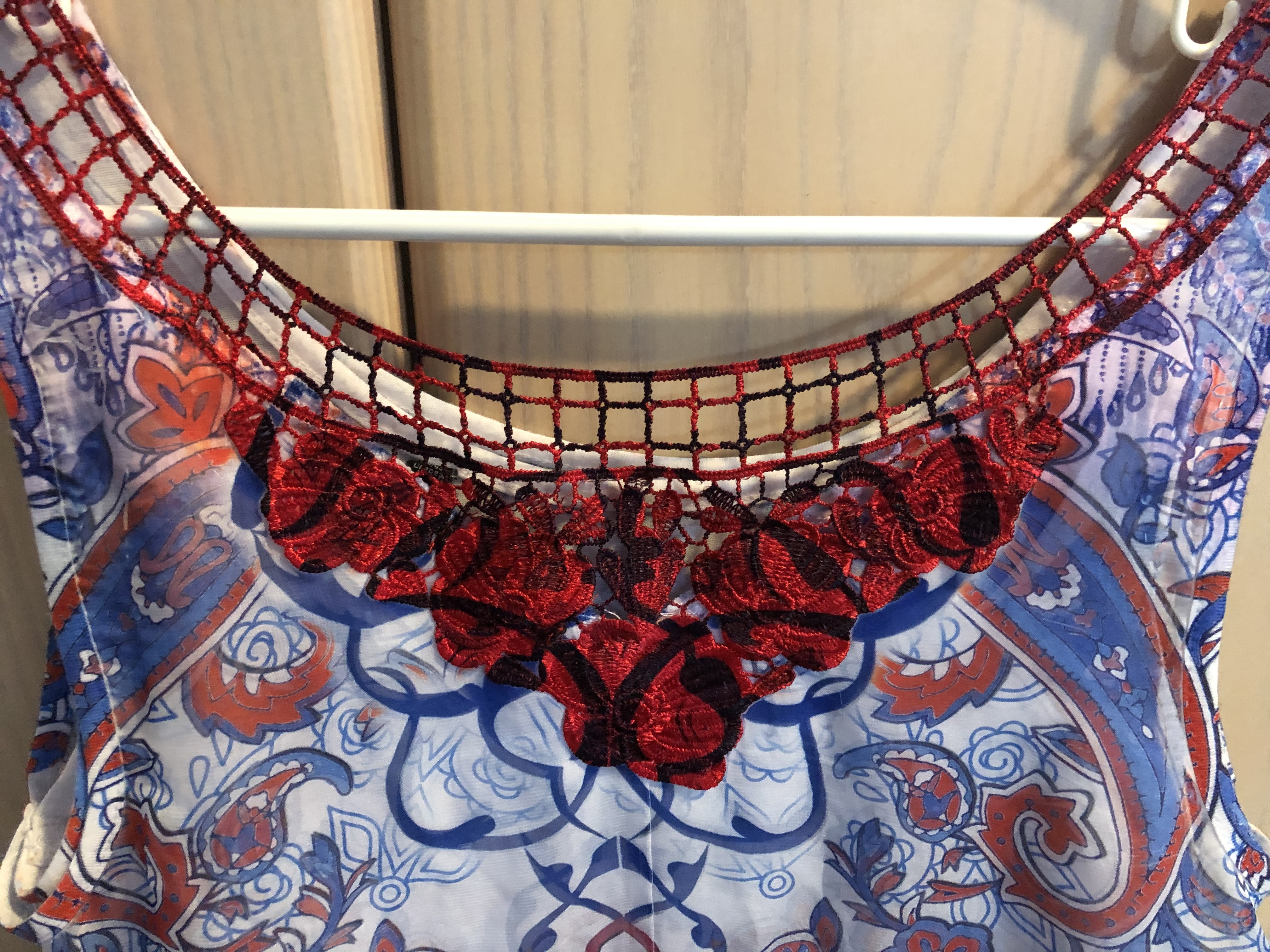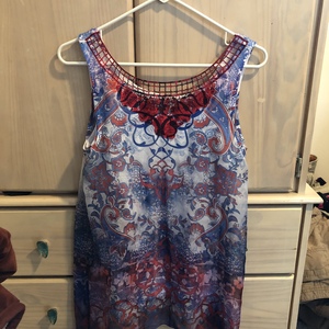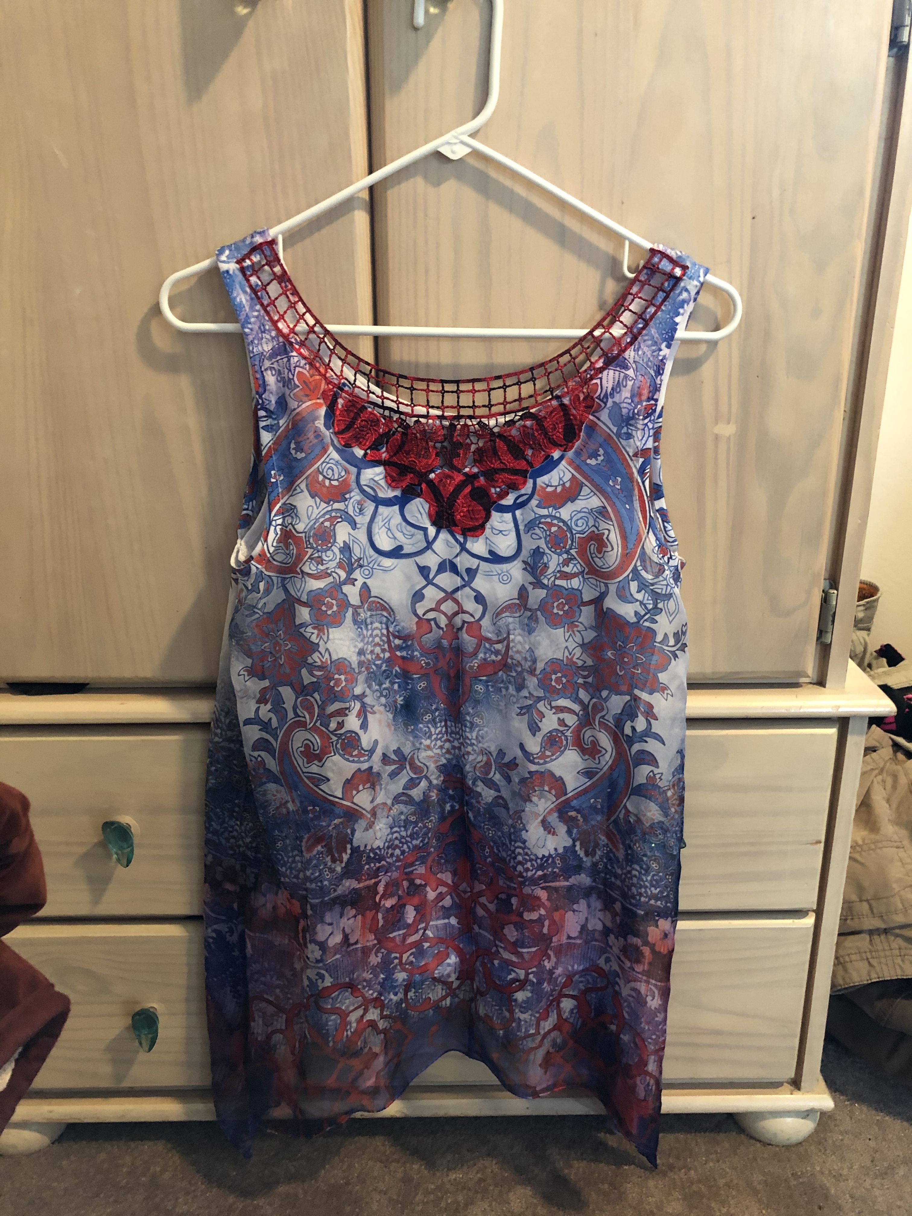 Like new blouse by Apt. 9. Size small. Too small for me. Has an inner layer covered by a sheer layer that hangs lower on the sides. Red lace detail.