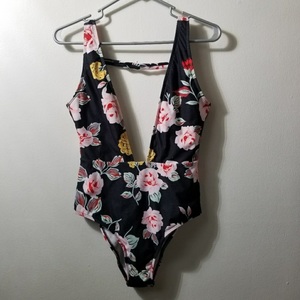 NEW Deep V Plunging Floral Swim Suit Sz S/M