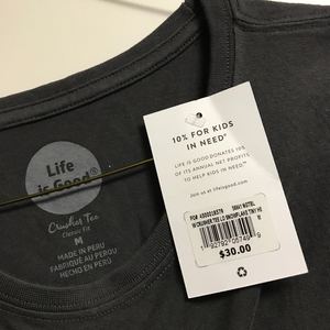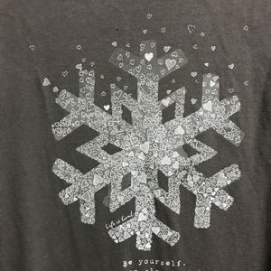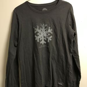 A size medium Life is Good long sleeved tee that has a snowflake print and reads "Be yourself. Everyone else is taken." Originally sold for $30 and tags still on!