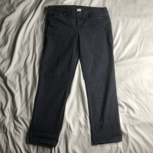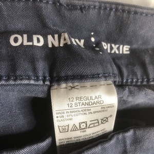 Blue old navy pixie chinos with a regular inseam. I'm short so I had to roll these up a few times.