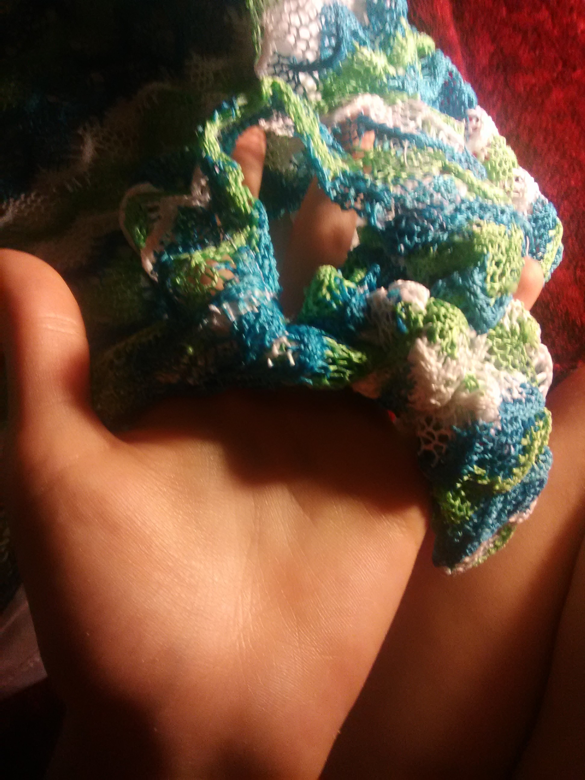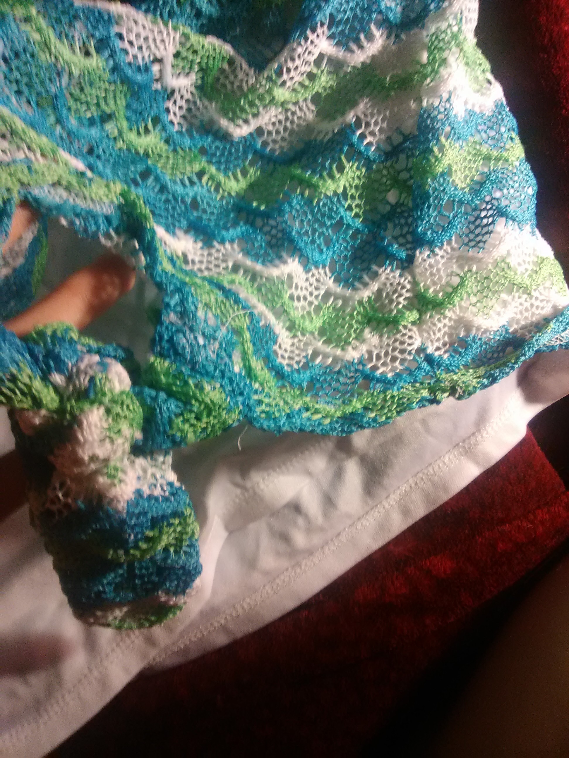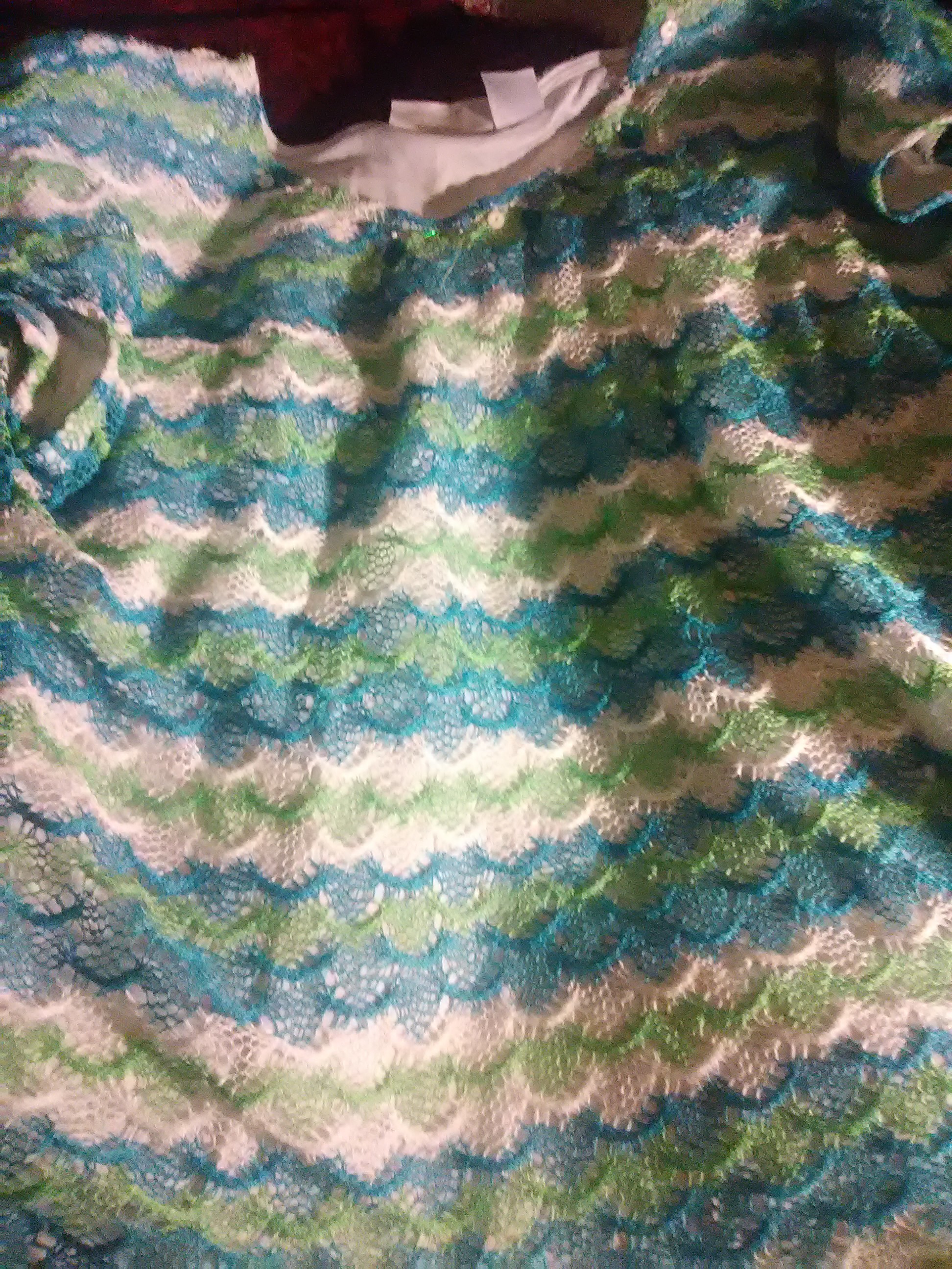 A green,white,blue short sleeve shirt, with a front tie.