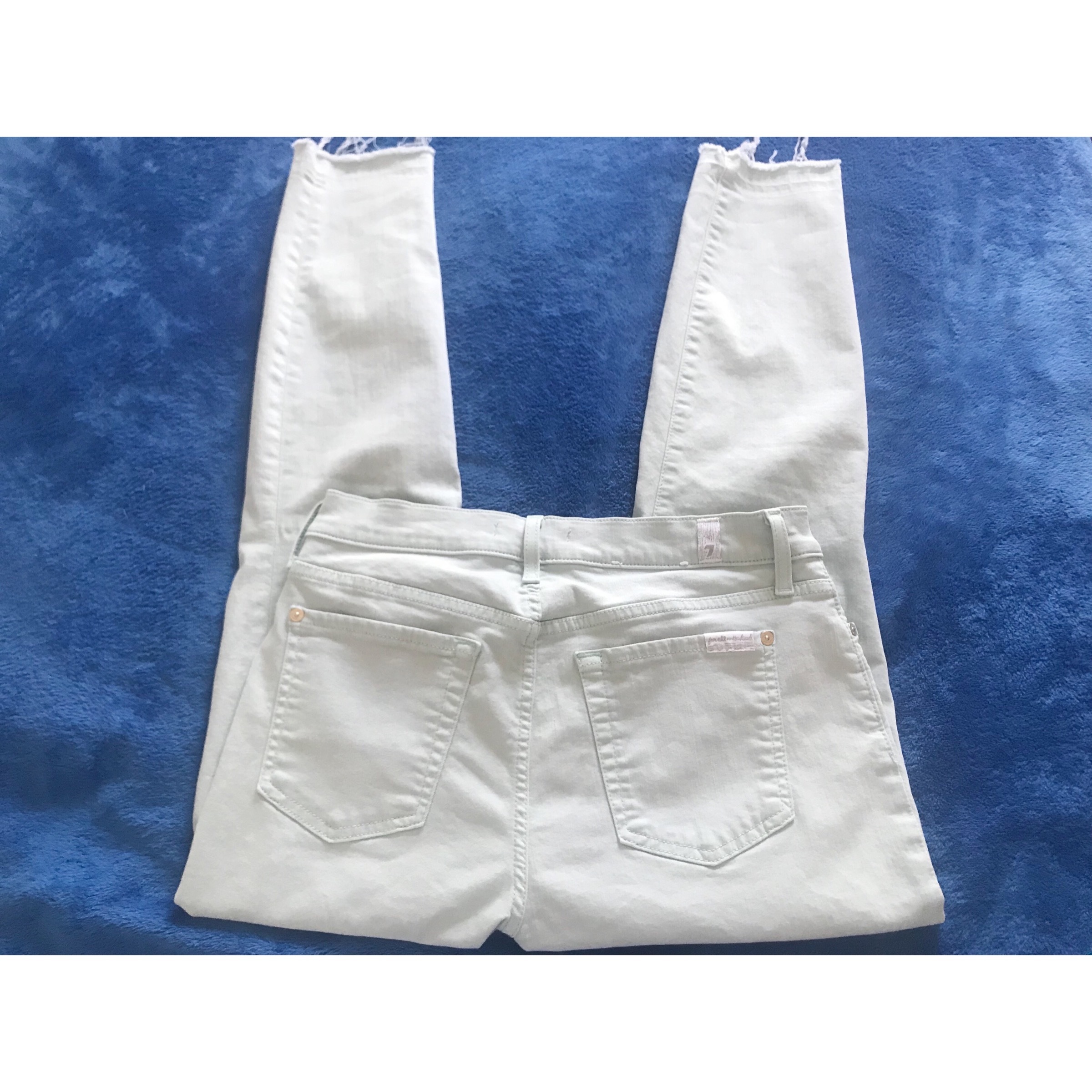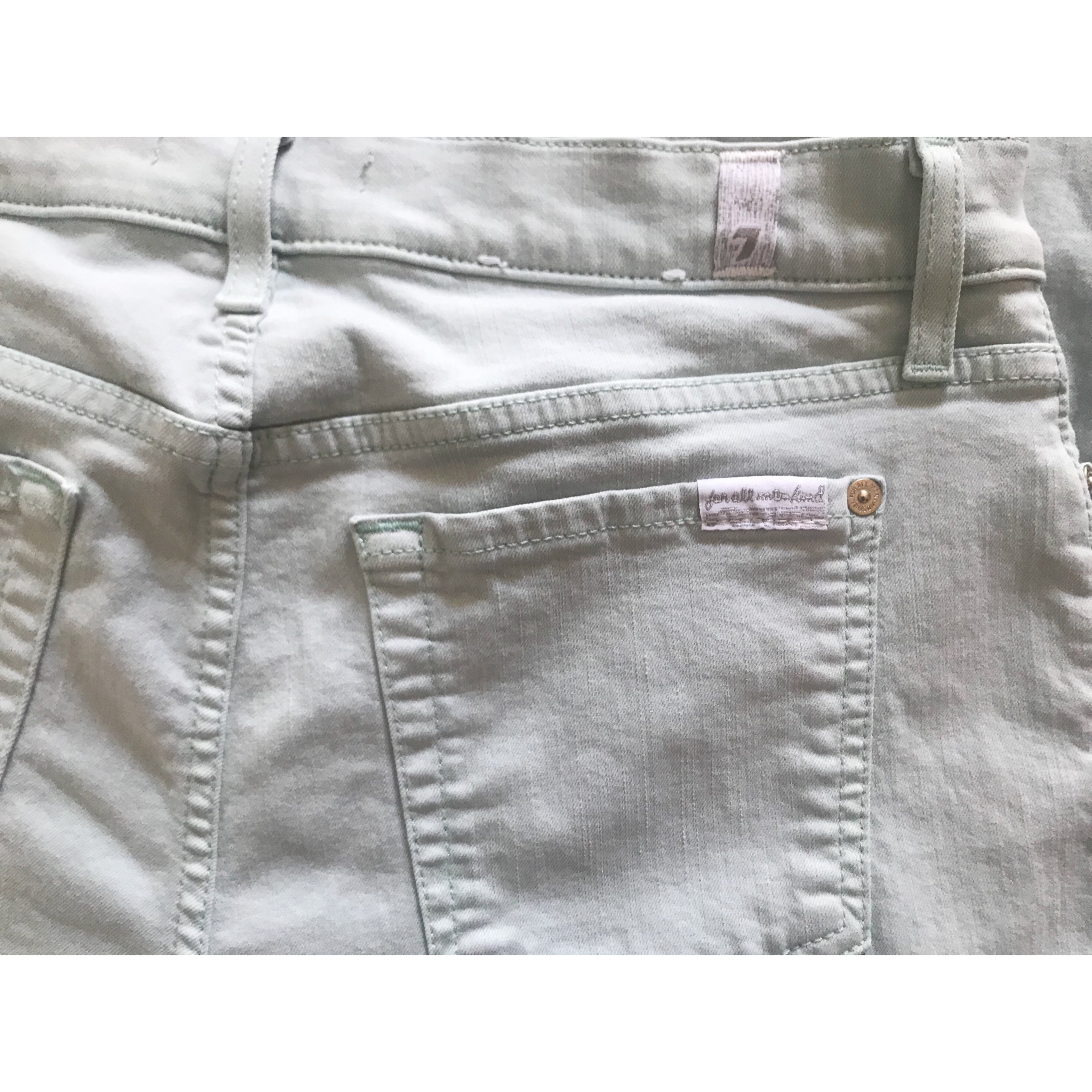 These pair of 7famk jeans are in good condition. They are a size 28. Very comfortable. Only flaws are minor fading and slight pre pilling. Measurements: Waist: 12 1/2” Hip: abt 16” Inseam: 25”