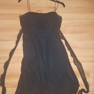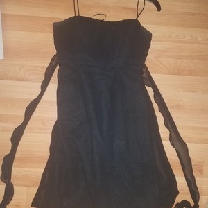 Black tie back dress. Size 4 but really fits like anywhere from a 2-6. The tie for this dress is honestly so cute because a you can see its got a cool texture which definitely makes it unique.