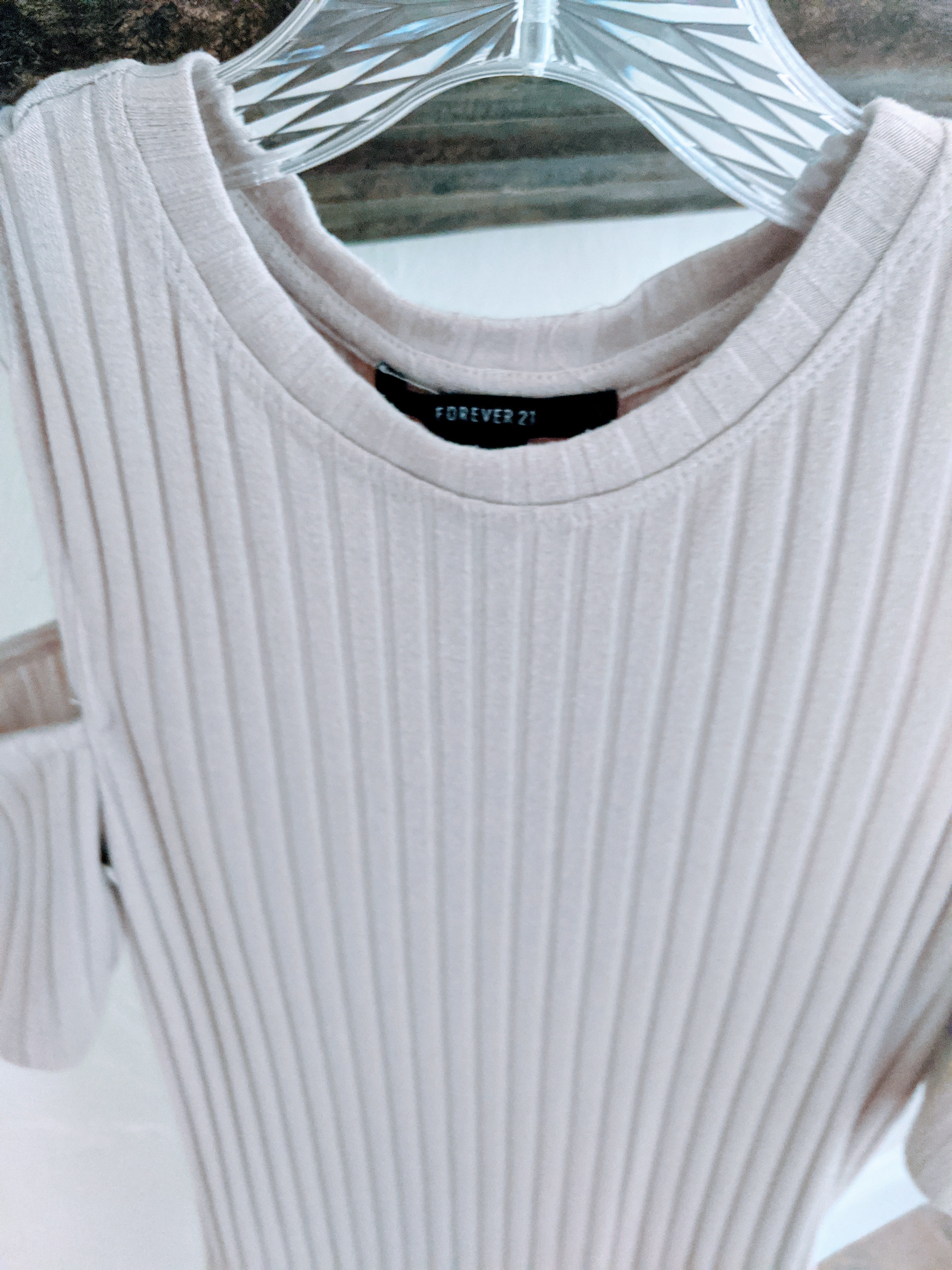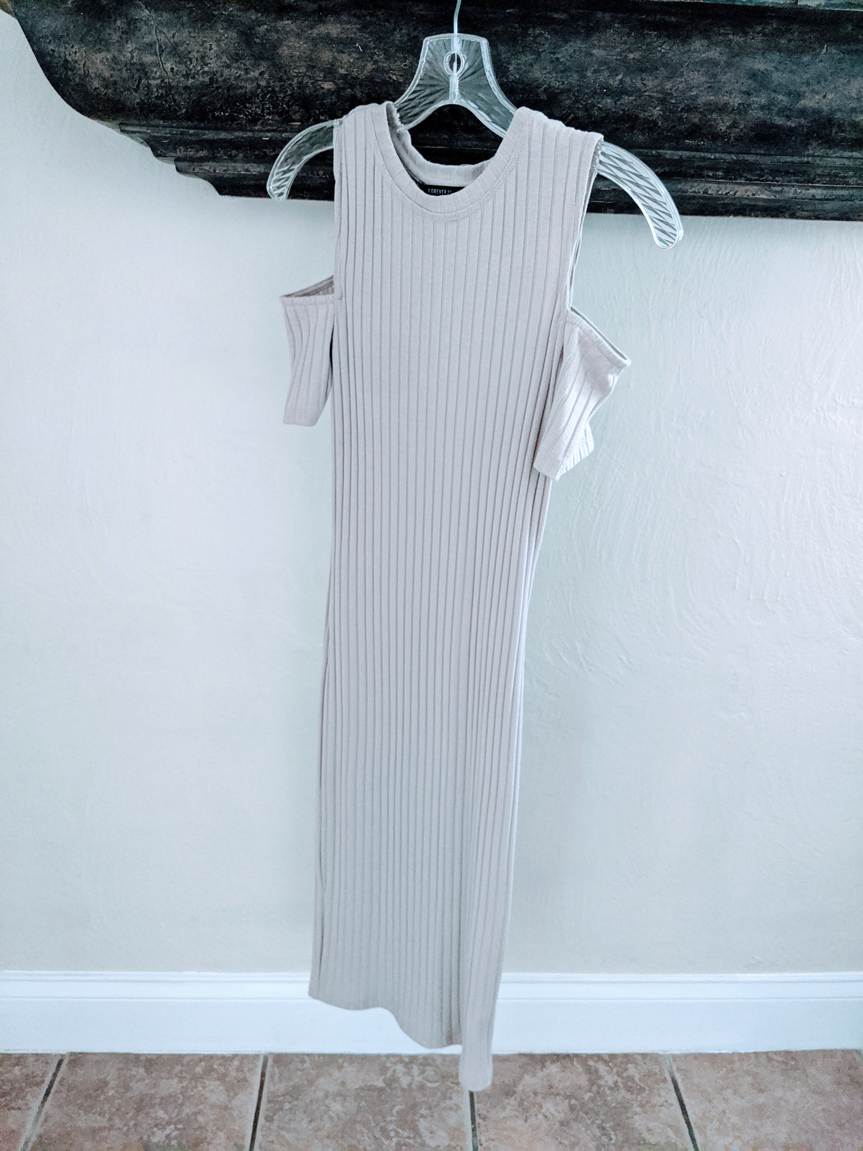 Cream/beige form fitting cold shoulder dress. Only worn once. It is super flattering and very sexy. The hanger doesn't do it justice!