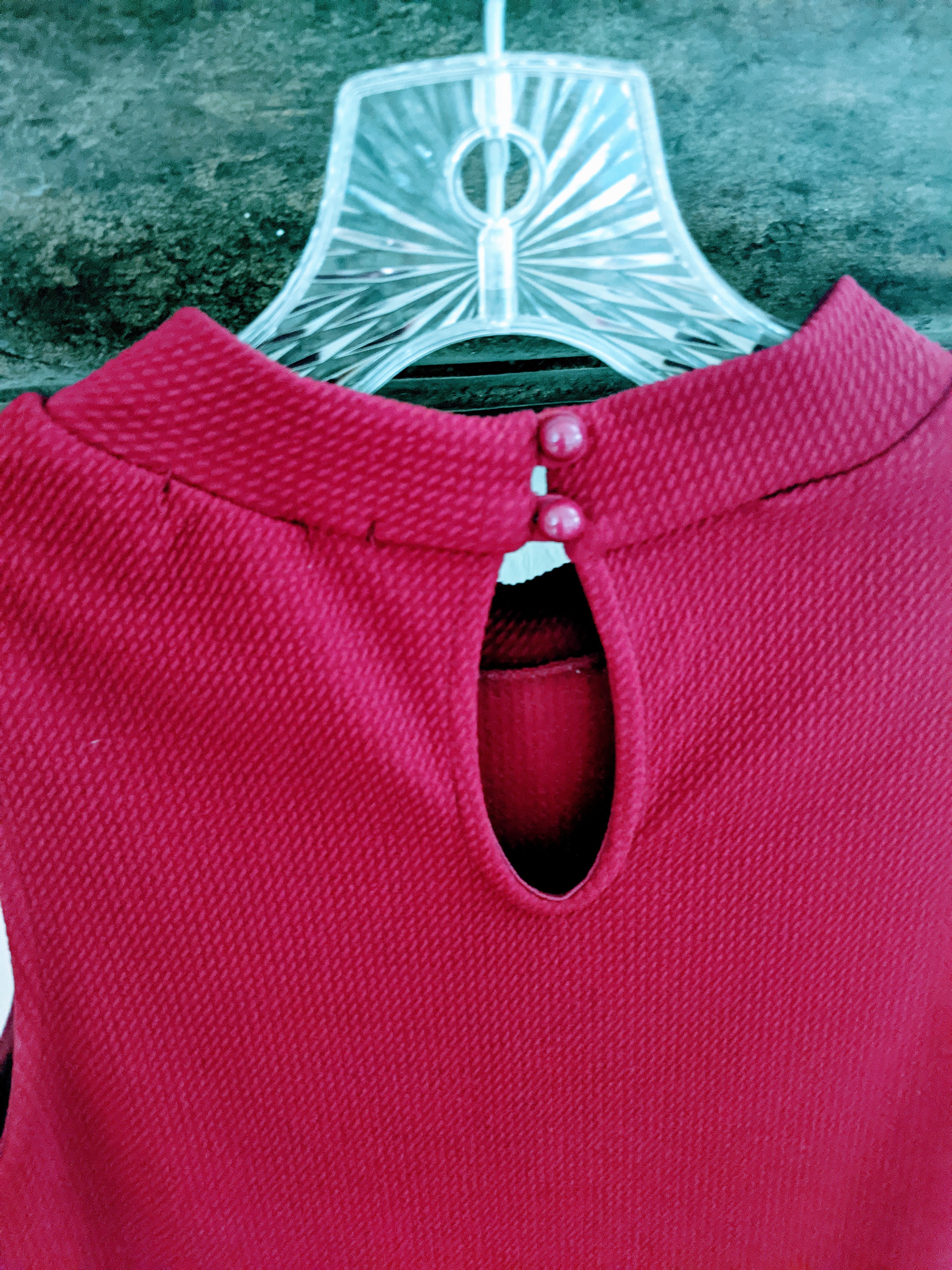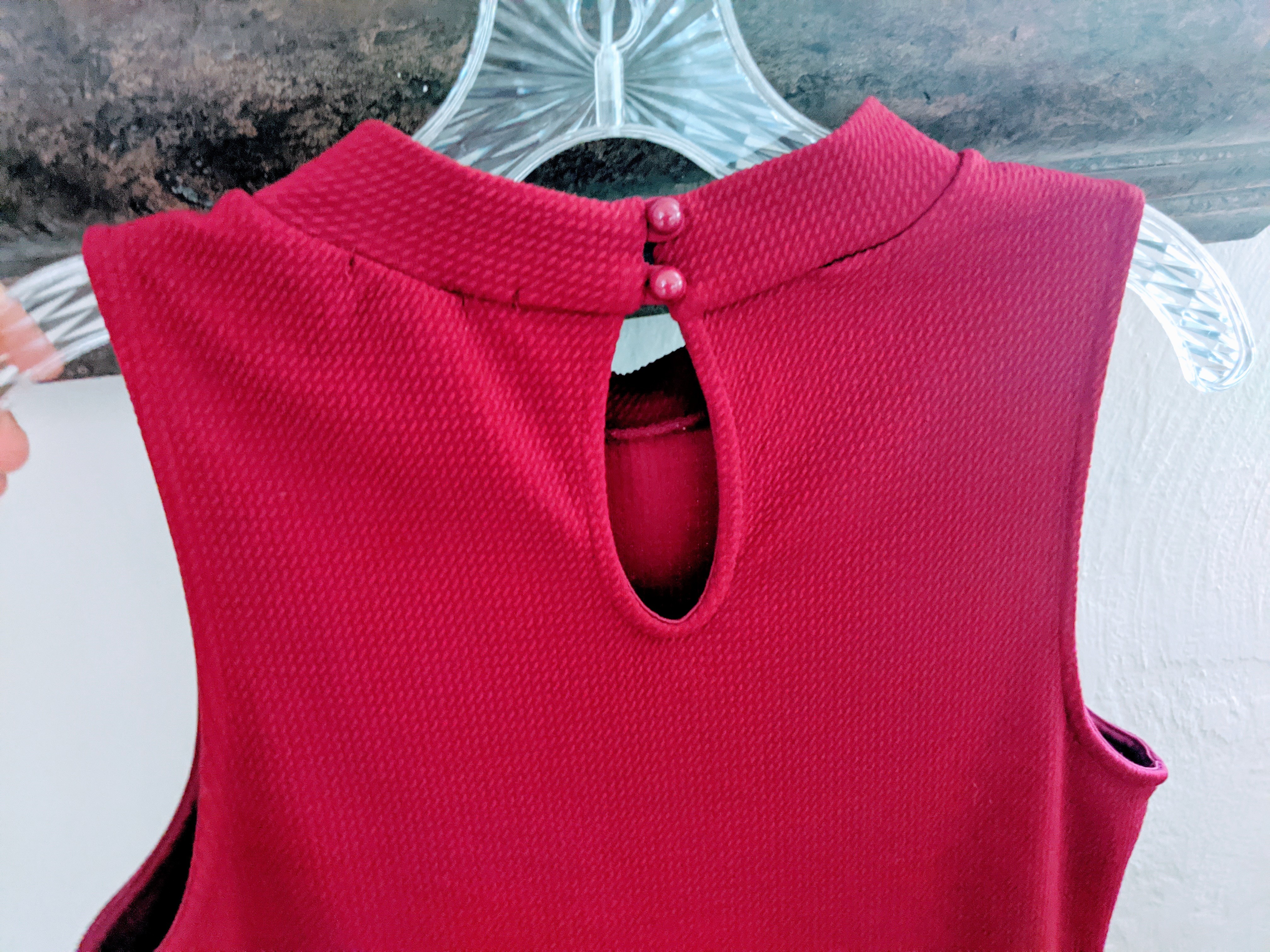 Short, red sleeveless fitted waist ruffle dress is being swapped online for free