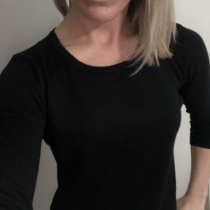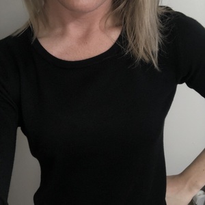 3/4 length sleeve black cardigan- very soft! Form fitting and cozy.