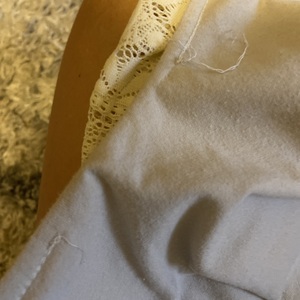 Super soft and stretchy white lace dress. Its actually a pretty thick material. Only worn a couple times. Stitching seems to be coming undone at the neckline inside but has no effect on how the dress looks (see pic).