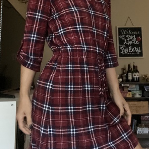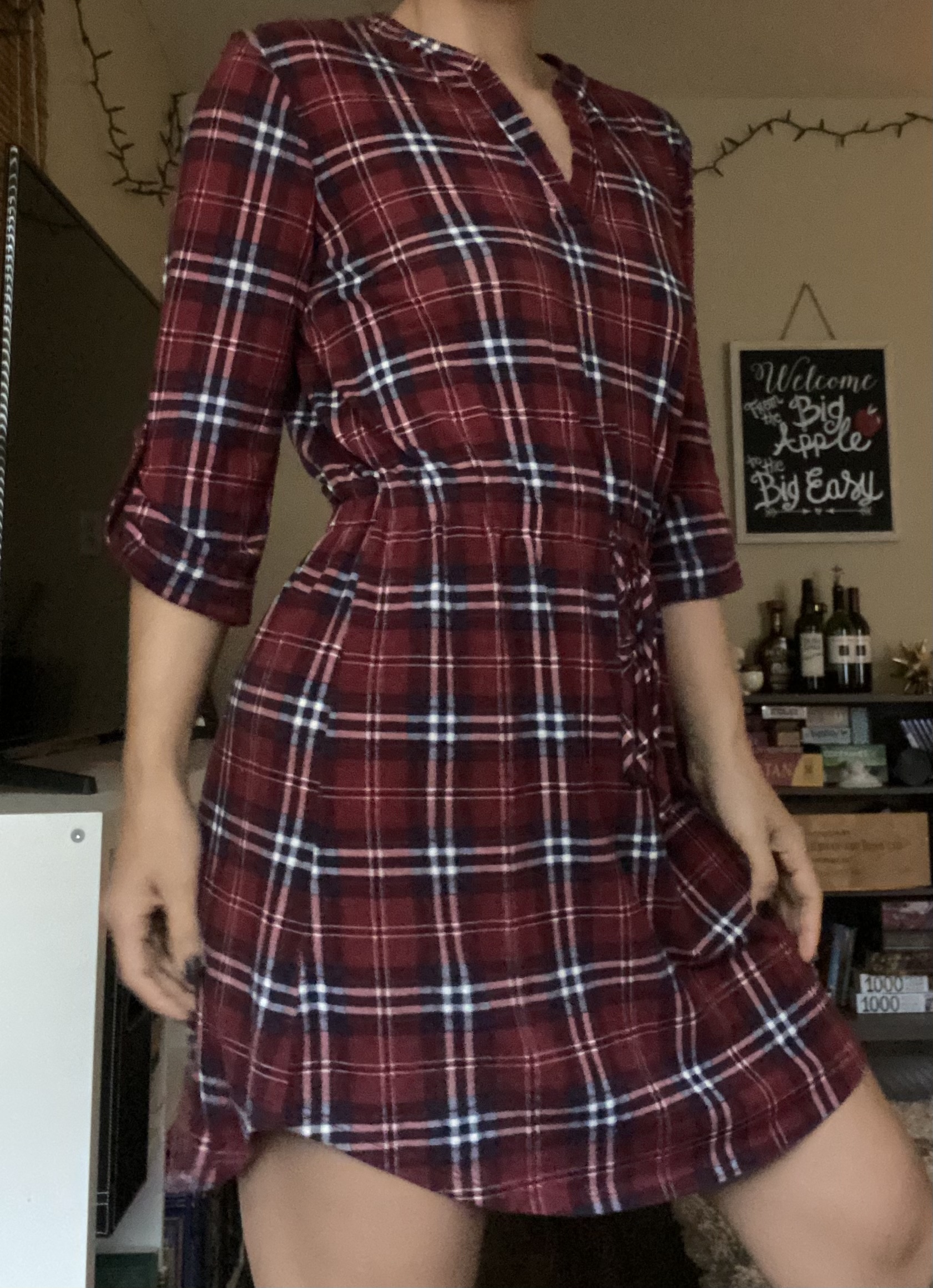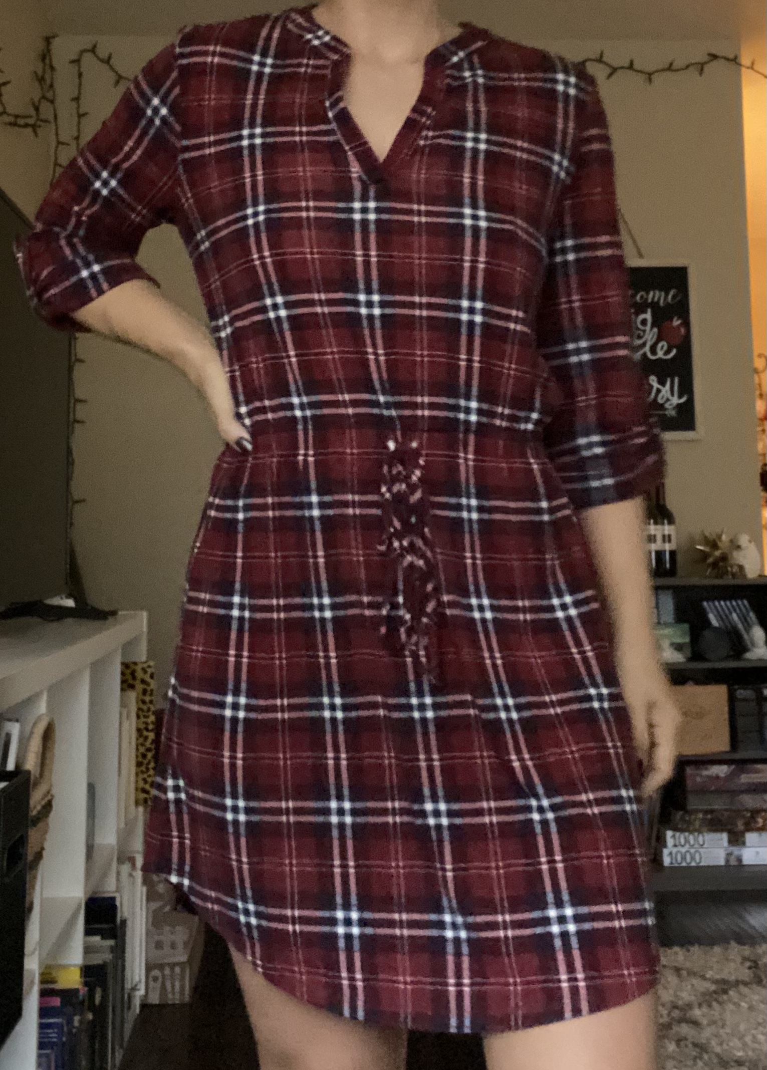 This is honestly the softest comfiest dress I’ve ever owned. I’ve worn several times with no obvious signs of wear/tear. There’s an elastic drawstring in the middle to cinch at the waist.