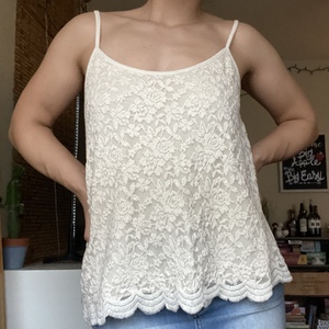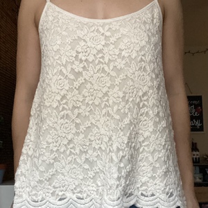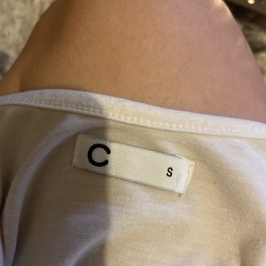 This is labeled as small but might be more of a medium? For me, the straps were too long and kept falling off my shoulder, which is an automatic nip slip with a shirt this flowy. I’m also an A cup so somebody w/ a bigger chest to fill out the top might not have the same problem. This is a stretchy material. Brand is C? Yeah, just the letter C. Idk.