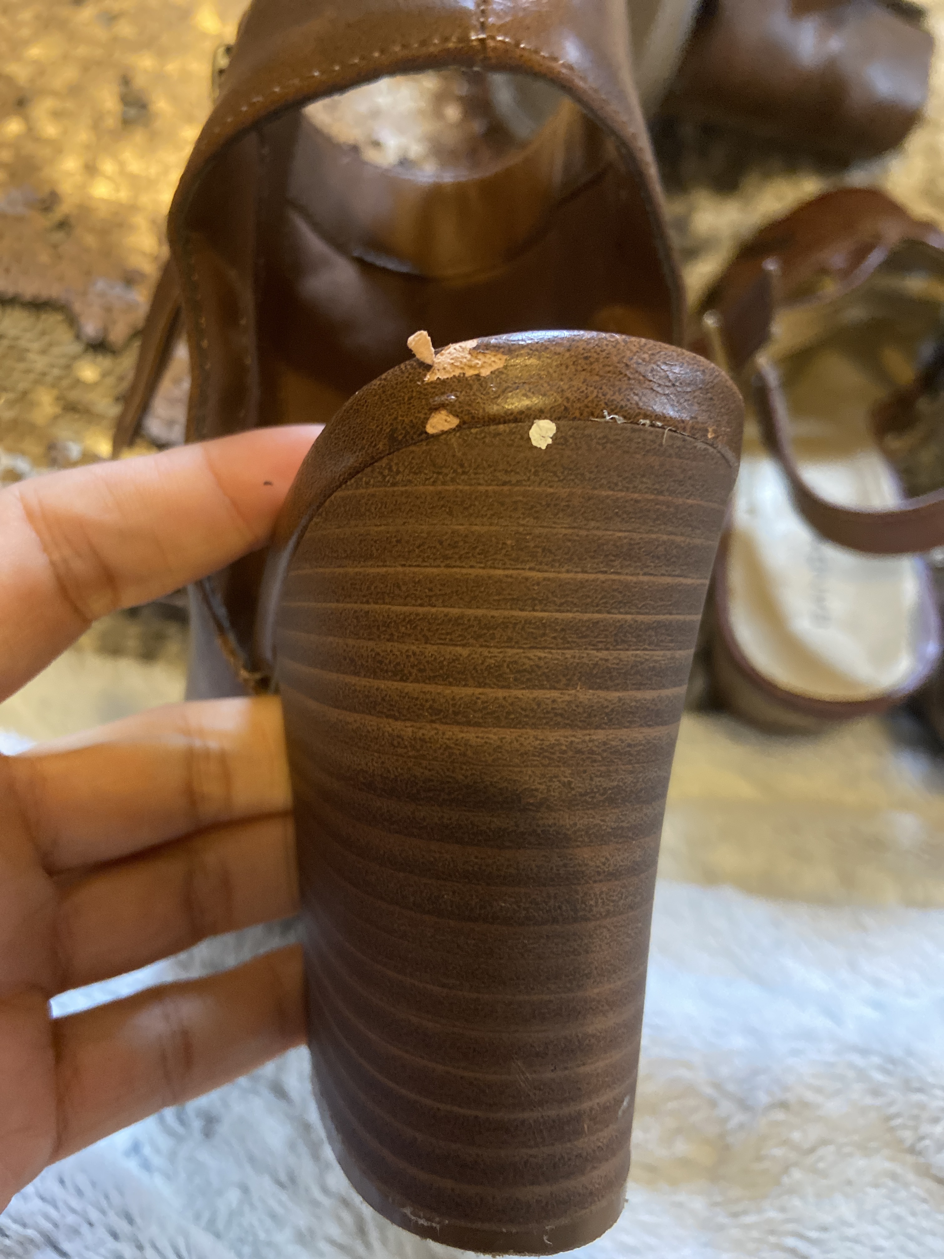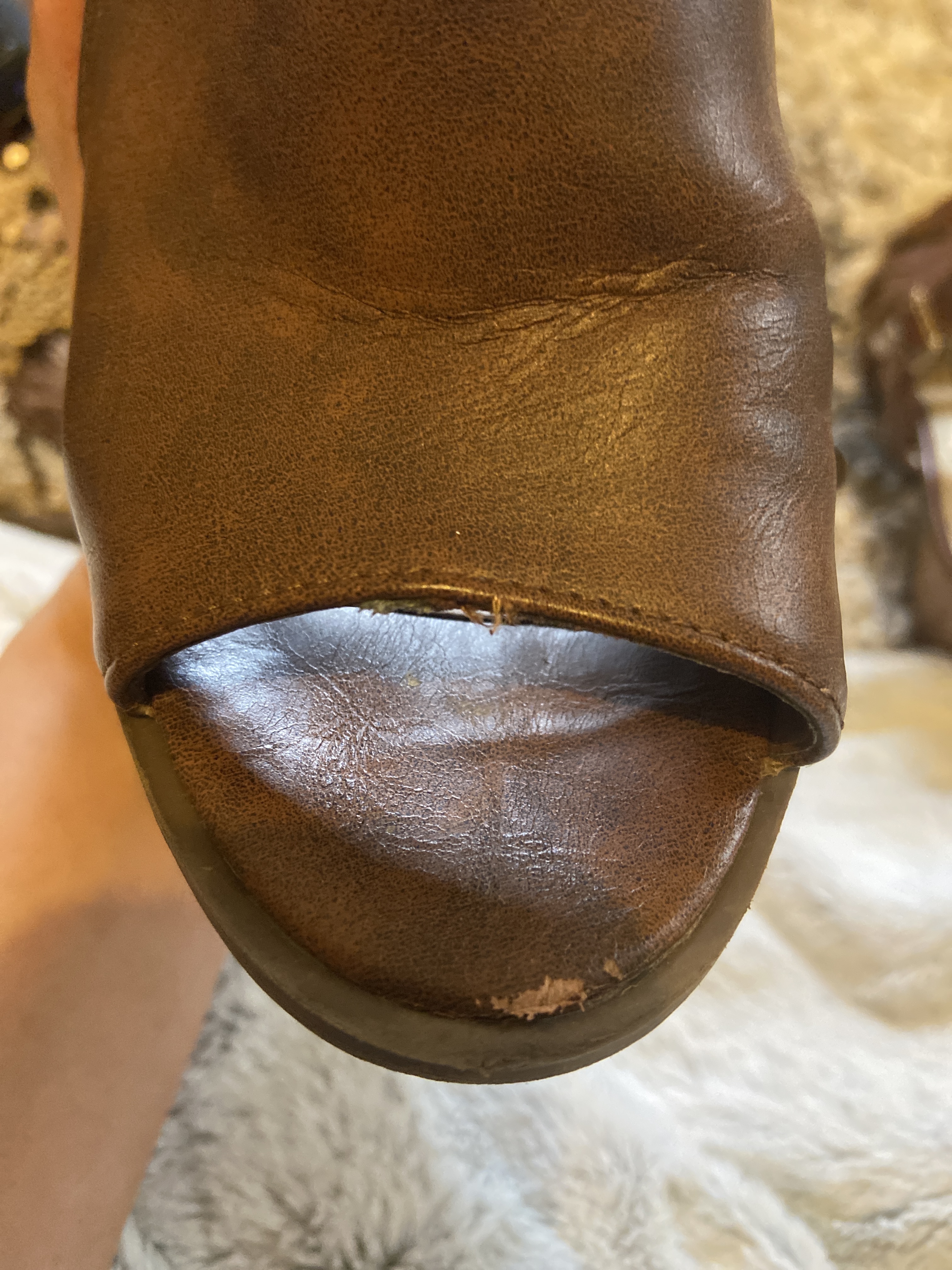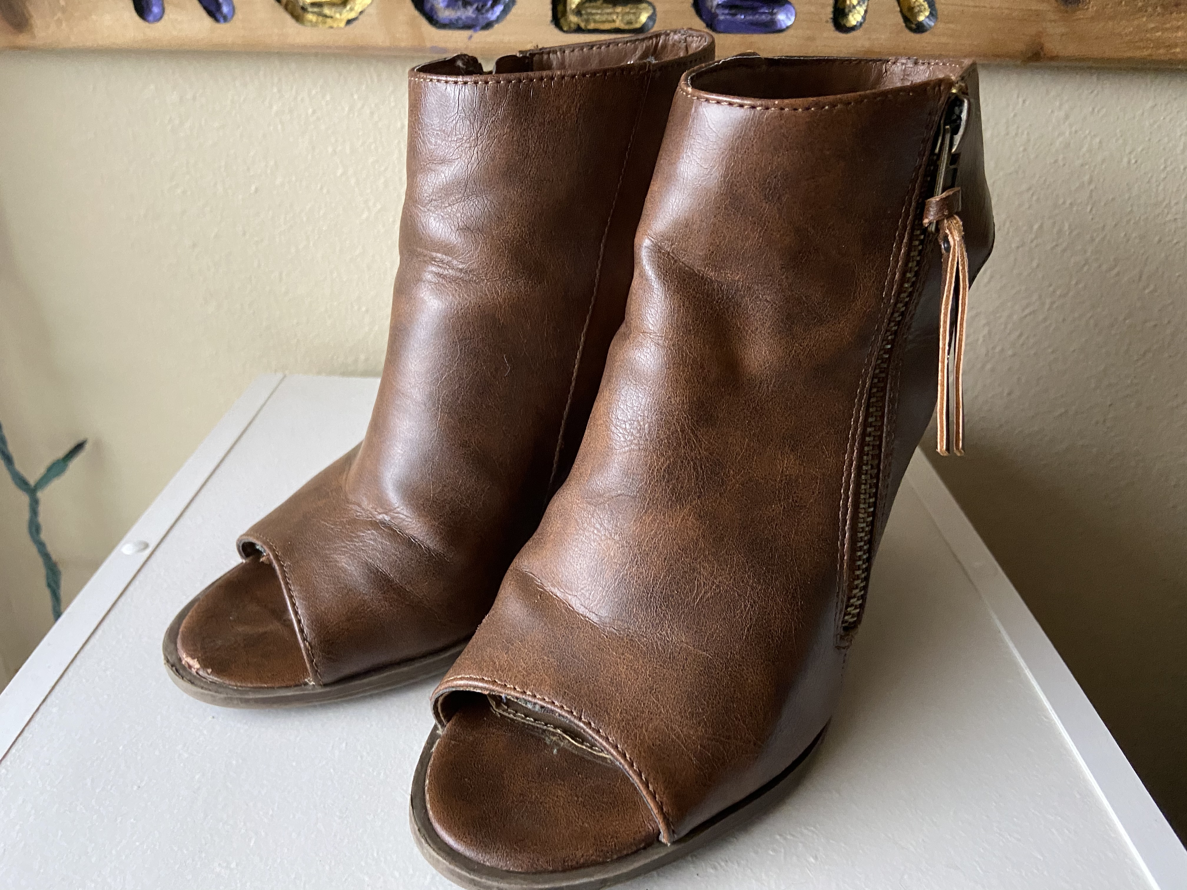 Super cute zip up peep toe and open heel heels. These have been worn a few times so there is some creasing and wear and tear which I will add in the photos.