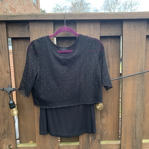 Size Large, but def runs small. Worn a few times, but I loved every time I wore it! Gives me retro 80s vibes! Great paired with large earrings and bright makeup.