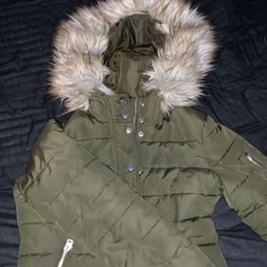 Top shop khaki puffer jacket with fur hood Amazing condition
