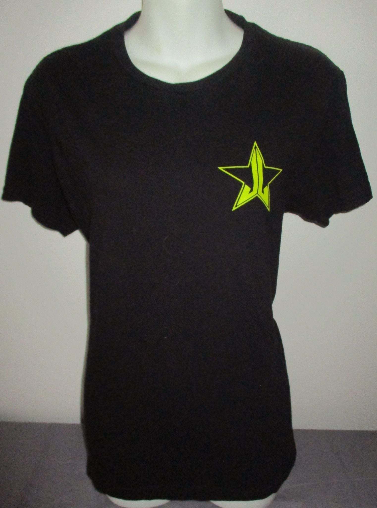 Awesome Jeffree Star Womens T-Shirt with the neon yellow logo star in front and print in the back that says '' Hi , Hoe are ya? '' This was a limited édition , worn only once or twice. still looks like new !! Size is a Medium but can also fit a Large