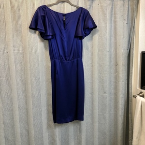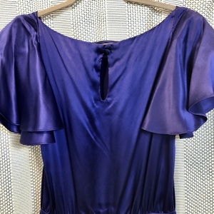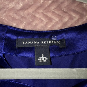Banana Republic Vintage Dress 1995 90’s fashion Satin knee length Flawless condition Short lightly draped sleeves Fitted elastic waste for flattering fit Super soft satin The color is BRILLIANT! Royal Blue Deep Purple Looks stunning on. Show Stopping Sexy Sophisticated Bought in 1995. Never Worn besides a few times in the mirror.