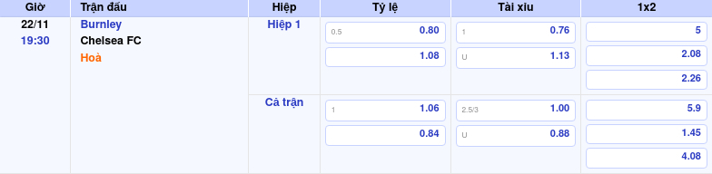 Phân tích kèo Burnley vs Chelsea FC ngày 22/11/2025