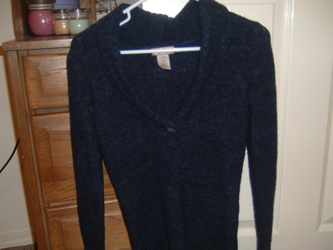 Corduroy blazer from The Limited. Straight-cut, oversized style. Marked "2", I think, I would definitely call it a 4, and wear it over a mid-weight sweater. Good with jeans and boots, or maybe with dock shoes (Topsiders) for a little bit on a '80s throwback. 100% cotton, completely lined. Professionally cleaned (that's the tag you see over the Limited tag) before Rehashing.