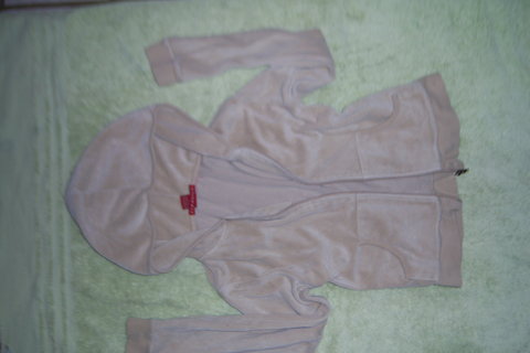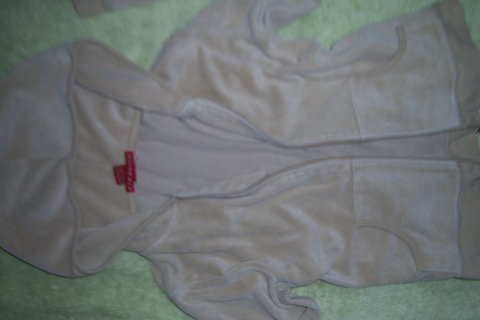 Here's a small sweater with hood. Very soft and comfy. Zipper front with 2 pockets. I worn this quite a bit, but in good condition still.