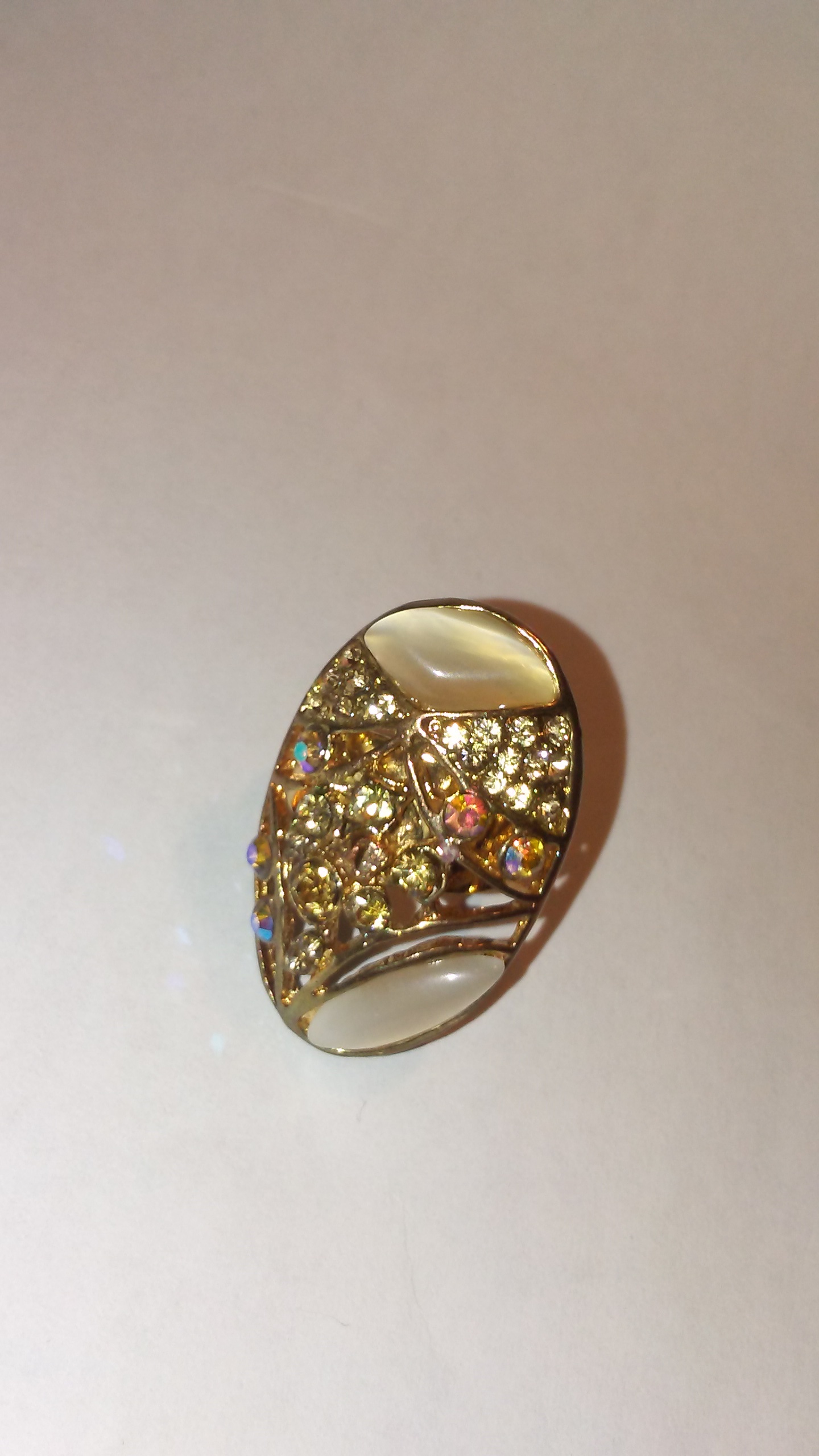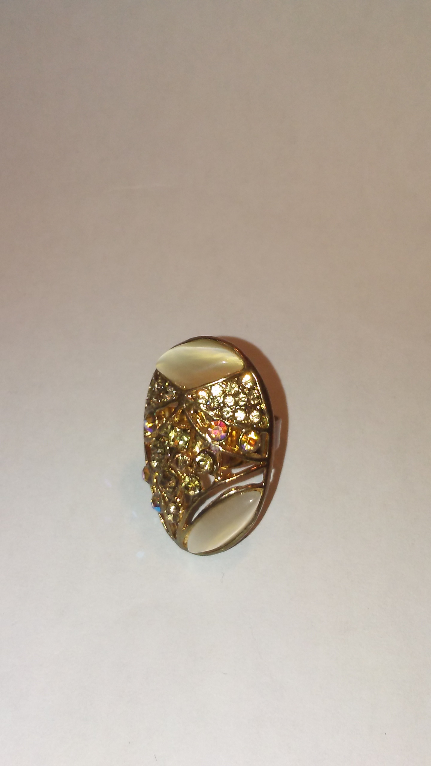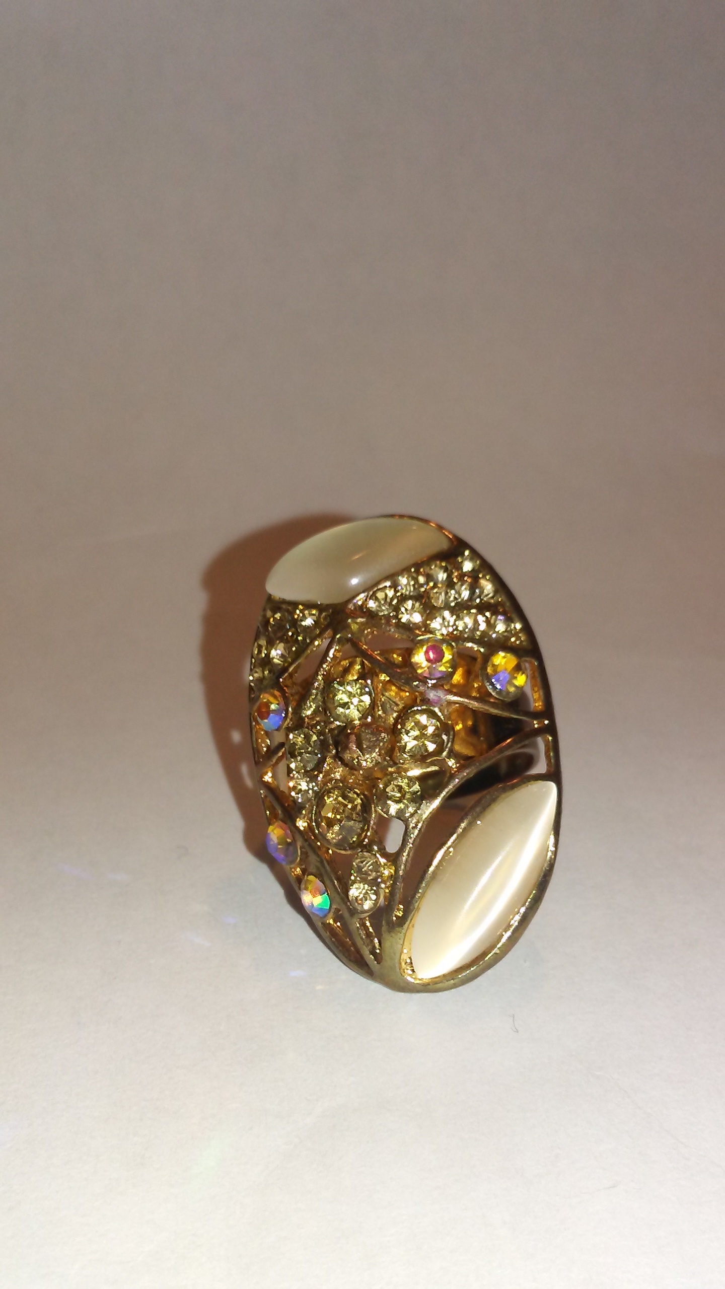 BEAUTIFUL GOLD COLORED RING WITH LITTLE RHINESTONES.