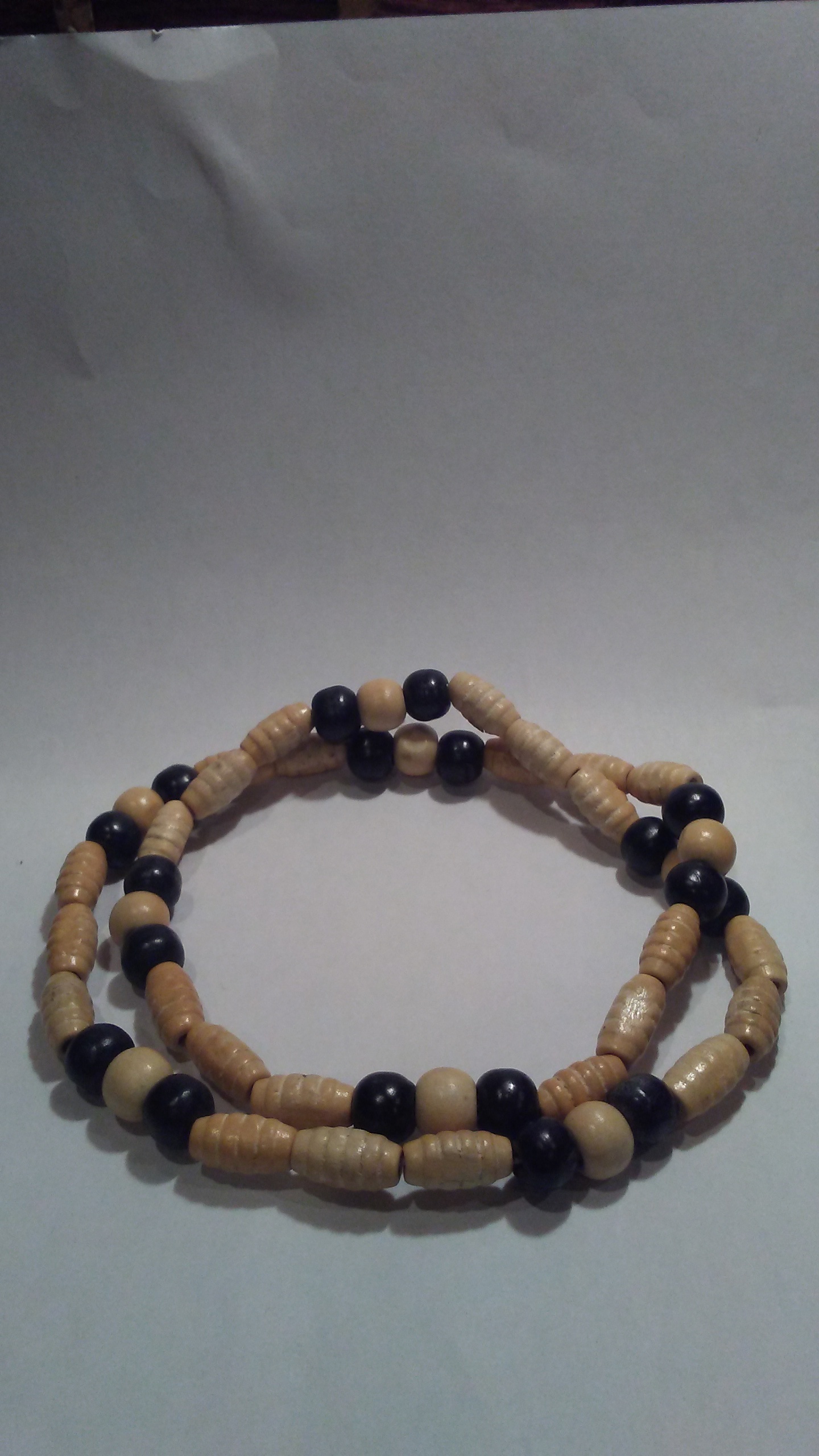 LIGHT COLORED WOODEN BEADED NECKLACE.