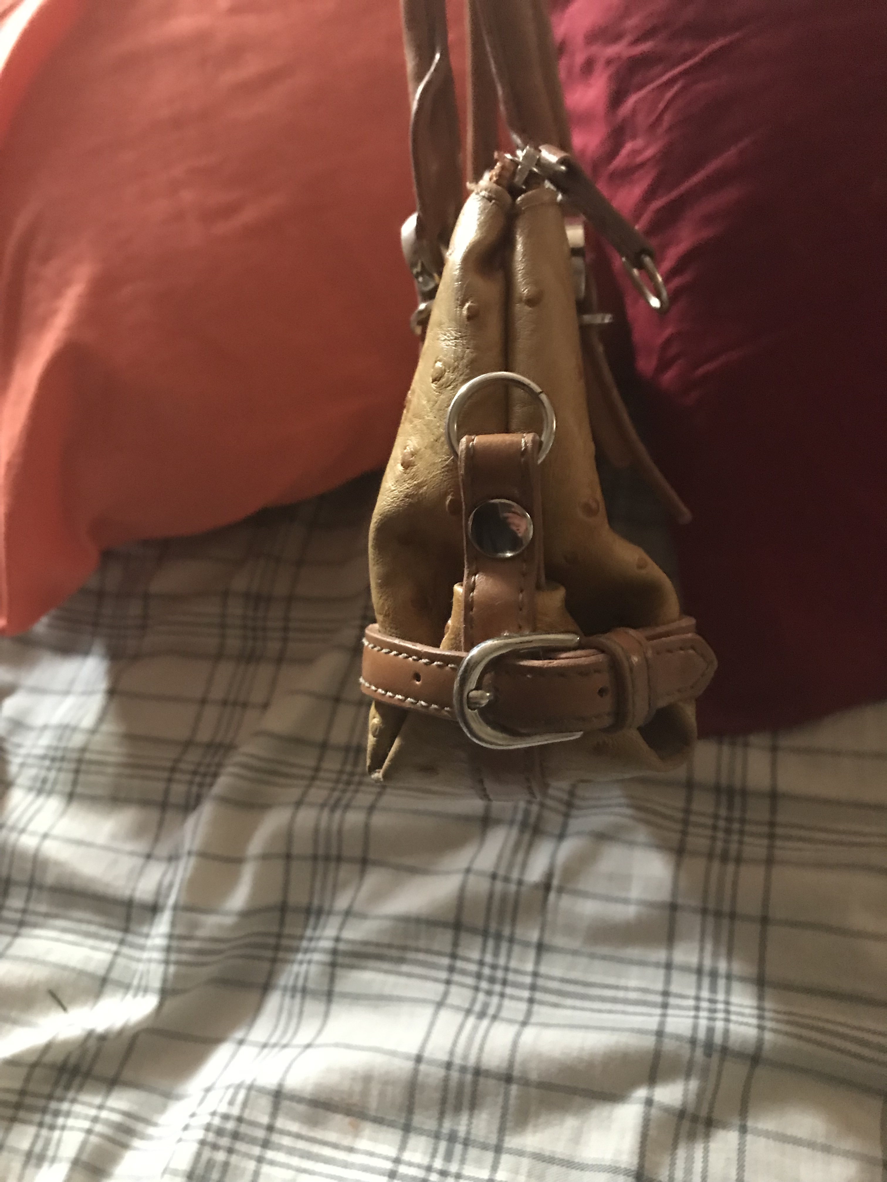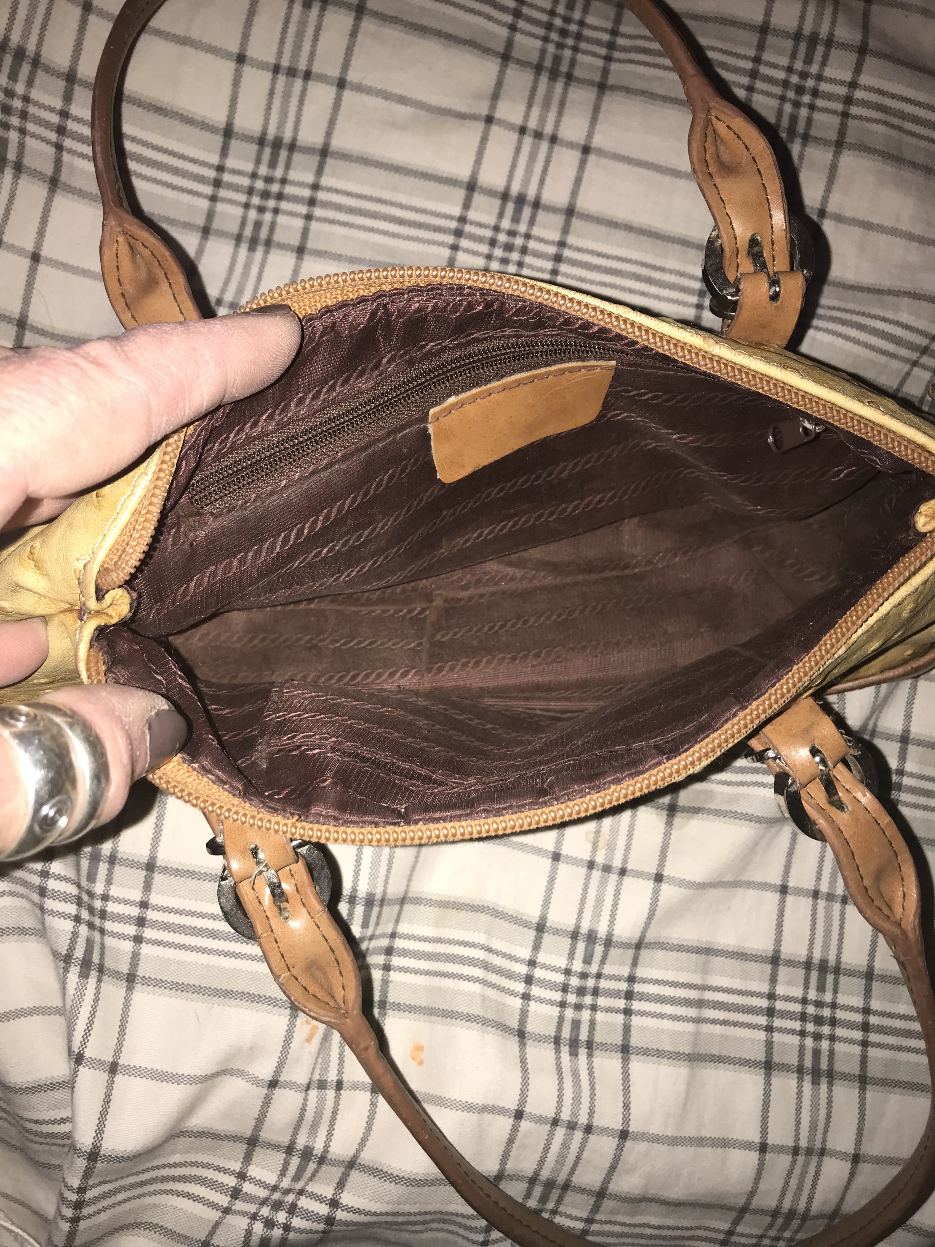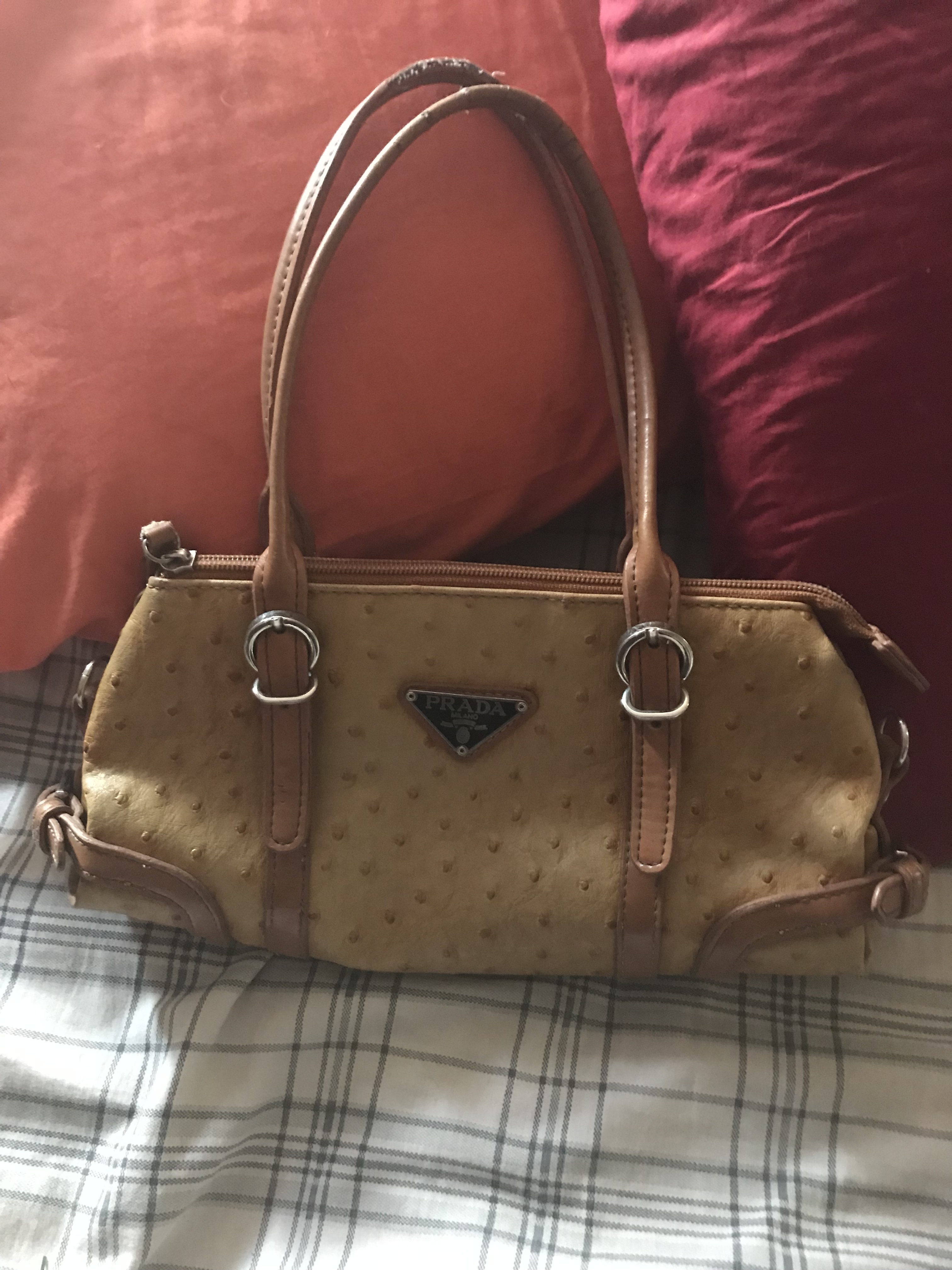 Authentic Prada mini bag. Made out of ostrich leather. Has all identifying markers and photos. Excellent like new condition. Perfect carry your wallet keys and phone in a little bit extra. Just never use it so my lost can be yours...just never use it.