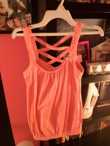 Salmon colored blouse! Super cute and it has a crossing pattern in the back. LOve this top just looking for something new!